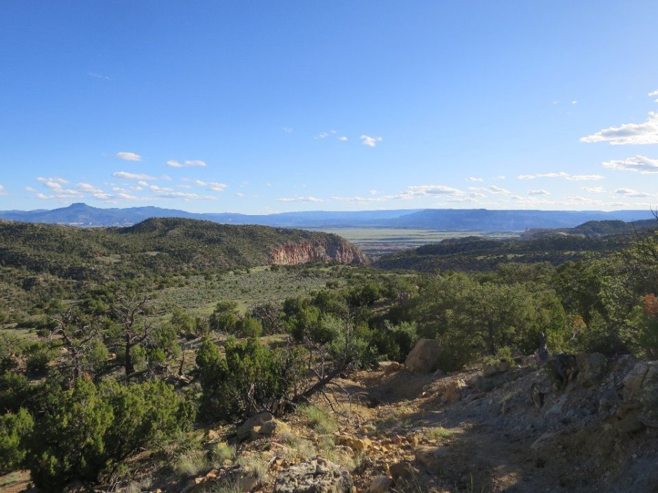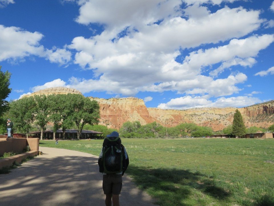 By lunchtime we made it to Ghost Ranch. A location I knew about because of its association with Georgia O’Keeffe. She lived and painted at the ranch and the local landscapes were the subject of many of her paintings. The setting for the Ranch is absolutely amazing. A backdrop of huge eroded canyon walls and a long view out towards an emerald green valley. We picked up our resupply package from the Welcome Centre and spent the afternoon catching up with other hikers and also on news from the outside world.