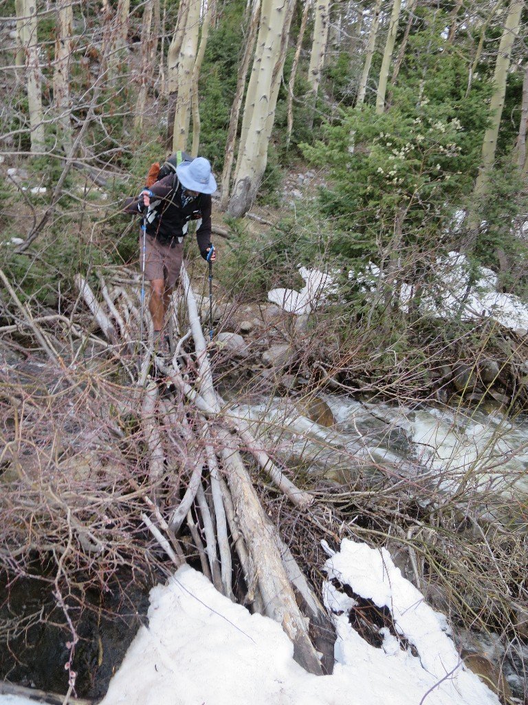 As we ascended towards the Upper Canjillon Lake the snow cover continued to increase. There were a couple of tricky creek crossings towards the end of the day but we still managed to cross without stepping into the creeks.