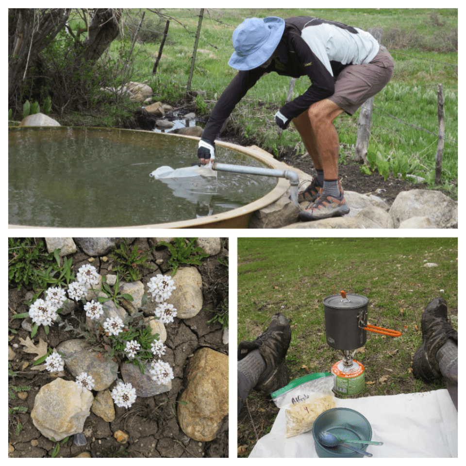 Just before lunch we were off the Ghost Ranch alternative route and rejoined the CDT. We found a sheltered spot to cook lunch and filter water from a spring pouring into a cattle trough. Stopping for lunch is always a nice part of the day.