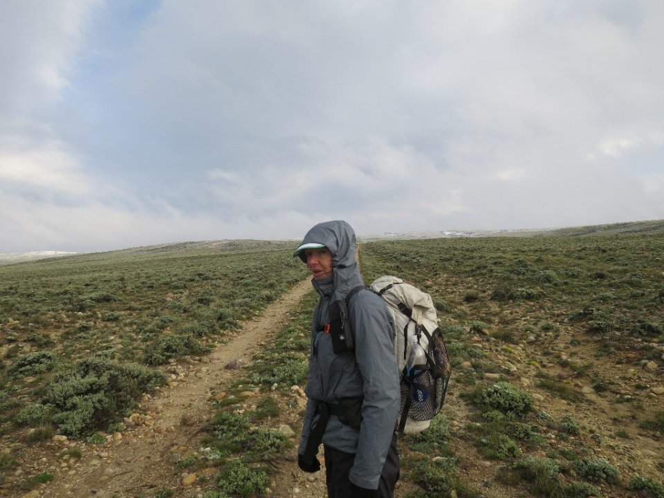 The rain came and went through the might but the wind remained unabated. It was hard to get moving despite close to 17 hours of bei g horizontal. It was just the thought of the repeat of yesterday that made me reluctant to move. But I knew that the weather was on the improve and by 6 am we packed our sodden tent and were on our way. It had stopped raining as we started to move but the wind was just as strong as yesterday. It took almost an hour for feeling to return to my hands. Patches of blue sky started to appear and the wind started to die down.