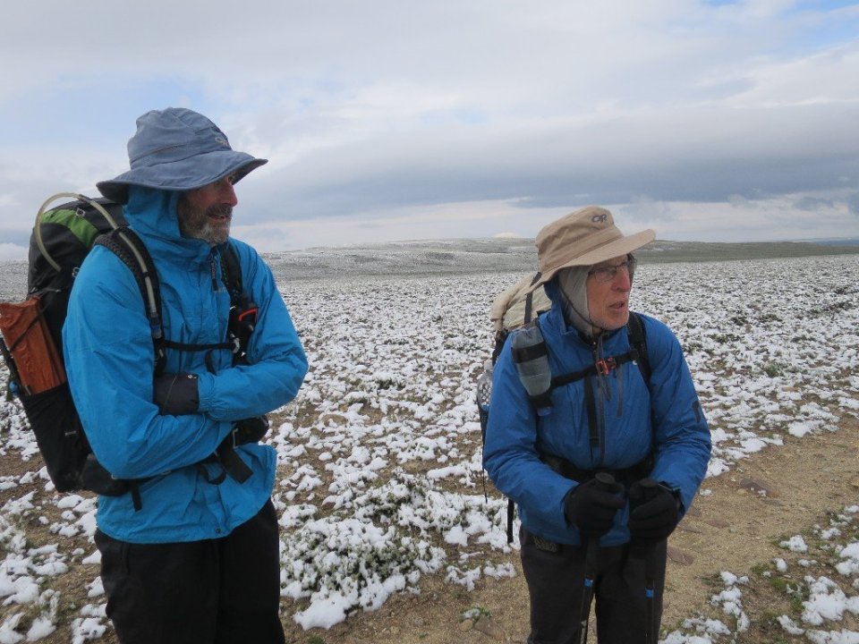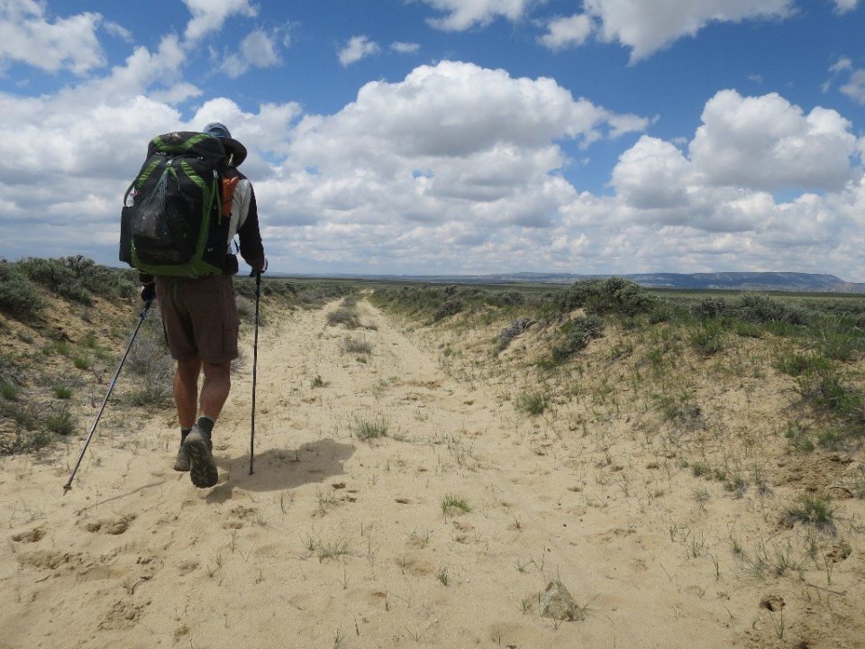 The day just got better and better. The trail was less tedious and much more scenic. By lunchtime we were in sunshine and hiking on sand. Who would have thought sand hills in the middle of Wyoming and fringed by snowcovered peaks. We stopped for lunch, dried the tent and hit the trail with even more renewed vigour.
