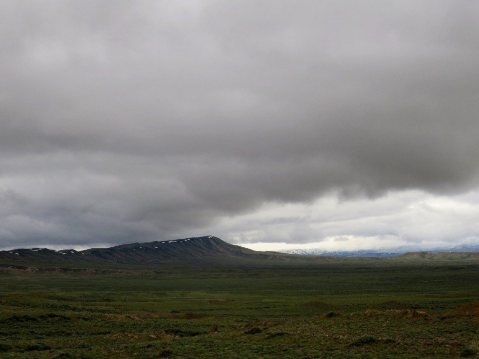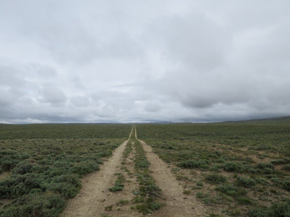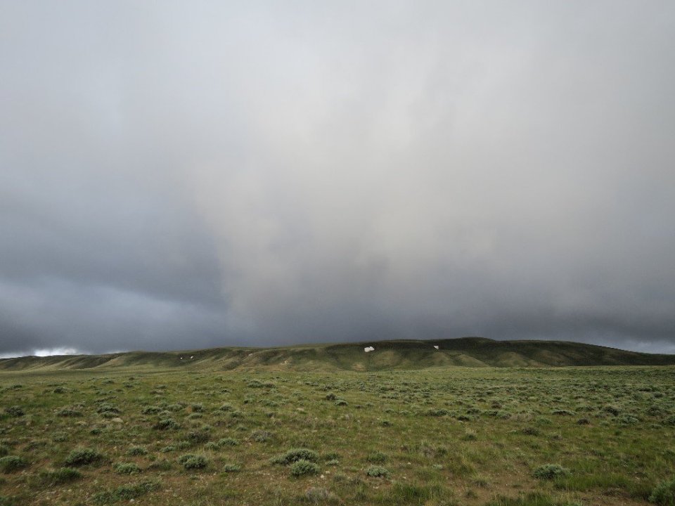 I couldn’t imagine that the environment of the Great Divide Basin would be any more welcoming in the heat of the summer months. Today turned into such terrible conditions that even the antelope and the wild horses disappeared. It fekt like it was just the two us wondering this wild open land. I realised that everything would be better in the morning and the best option for us was to cut our losses for today and set up camp, get out of the wind and get dry and warm. But in this barren open landscape that was not going to be so easy. We were out in the open and exposed to the wind and rain. There was nowhere to escape it. I wondered if the Big Agnes tent would be able to withstand the blustering wind. Just as we decided to call it quits on the days hiking, a young rancher drove up towards us. He stopped and asked where we were going. His look reflected what I was thinking – what are these stupid people doing out here? He offered us a ride in the direction we had come from. There was no point in going back there, the conditions were the same. He couldn’t do anymore so he drove away.