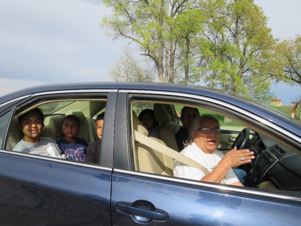 We were passing by the Wyoming Indian High School when a car pulled up. They were curious what were doing. When I explained, they laughed, it confirmed what they thought – we were silly to be walking. The 4 kids in the back seat were happy to be on school holidays and wished us a good hike before they drove away.