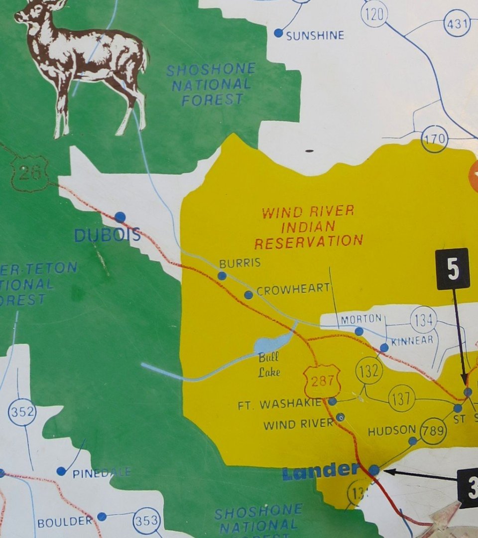We stayed on the north side of the river for some time before deviating away to go up into the hills. Following our mapped route took us through the Wind River Indian Reservation land, home of the Shoshone and Arapahoe tribes.