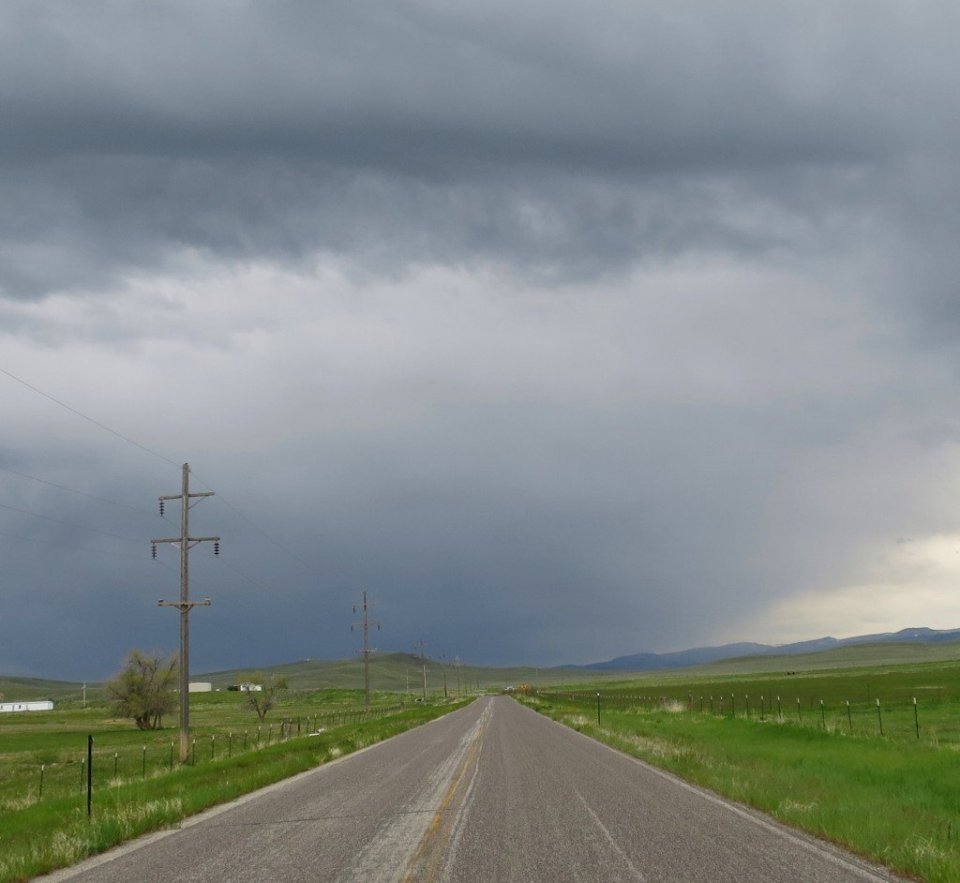On the way out of town we stopped at the Crux Cafe for another coffee before hitting the open road. It was 12pm when we left Lander following N 2nd Street and crossing the Middle Fork of the Popo Agie River. Dark clouds were gathering behind us. This seems to be a bit of a pattern developing for us.