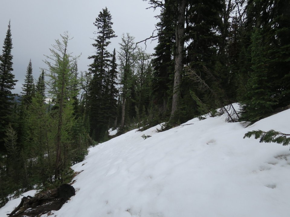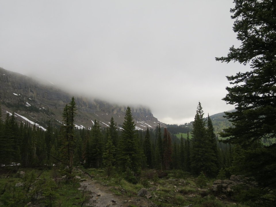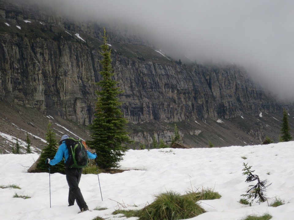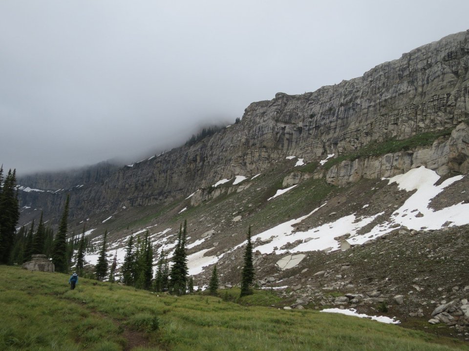 Circulation returned to hands and feet as we got moving again. We planned to take the Spotted Bear Alternative, which promises better views back towards the Chinese Wall. We pray the cloud lifts tomorrow. It’s been good meeting south bound hikers as we got a trail conditions report from them so we are better prepared for what is ahead.