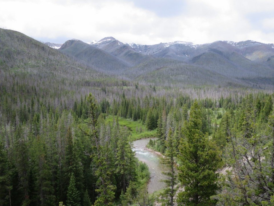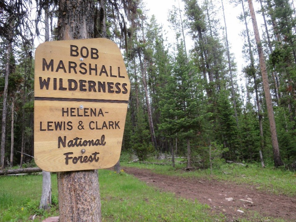 The trail was wet and muddy and must get a lot of horse traffic. We soon learnt why. We passed the Benchmark Wilderness Ranch Trailhead. There was beautiful timber bridge over the Sun River and the trail was like a horse highway, there were plenty of horse tracks and droppings. It was also here that we entered the Bob Marshall Wilderness Area.