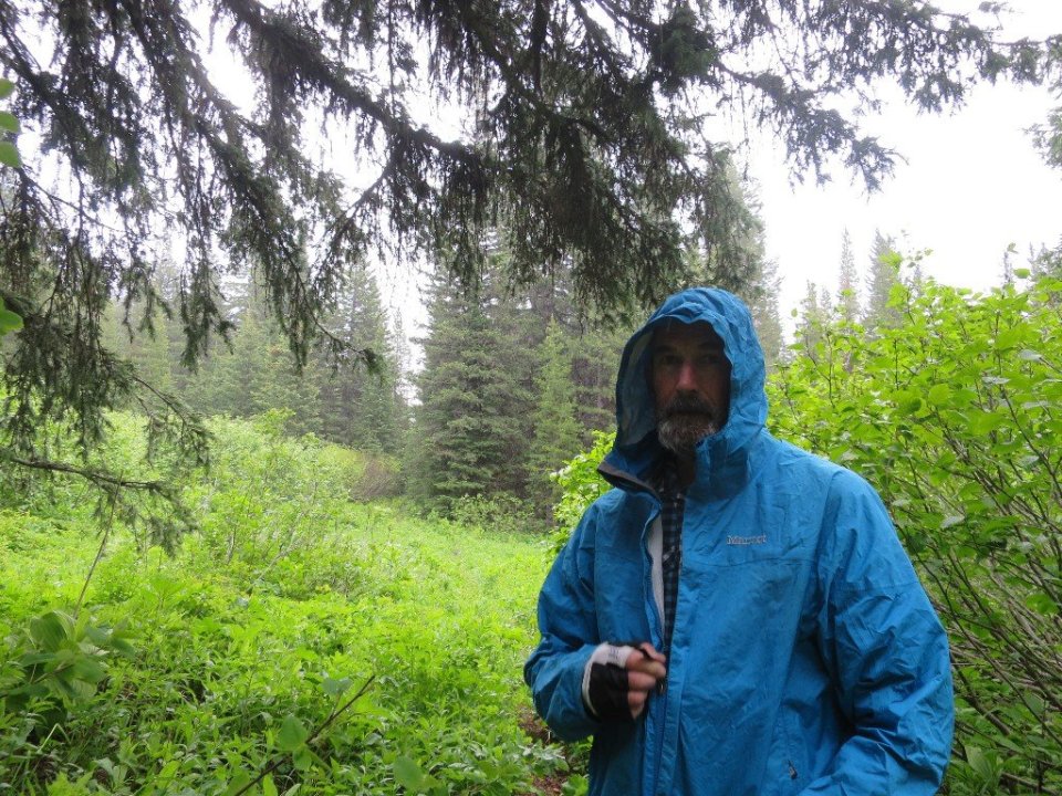 ‘Oh what a beautiful morning’ I sang quietly this morning to cheer myself a little. Hammer was getting annoyed with me because it was anything but beautiful. It has rained all night and it did not stop while we broke camp. At least it wasn’t overly cold. Putting on wet shoes and socks was uncomfortable but once on, we were ready to hit the wet trail with lot more creek crossings ahead of us.