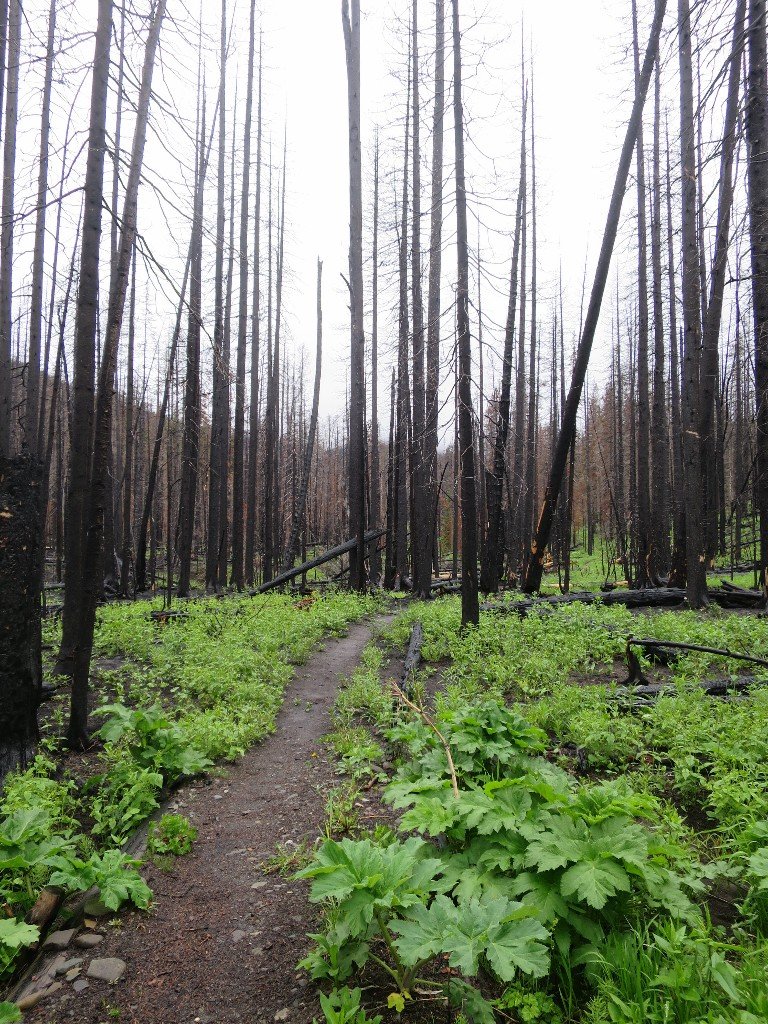 The lush green undergrowth kept our feet soaked. For the first 4 hrs we hiked through burnt forest with continued steady rain. After Hammer finished telling me about the podcasts he listened to last night I let my mind drift to a more pleasant place then where I was right now.