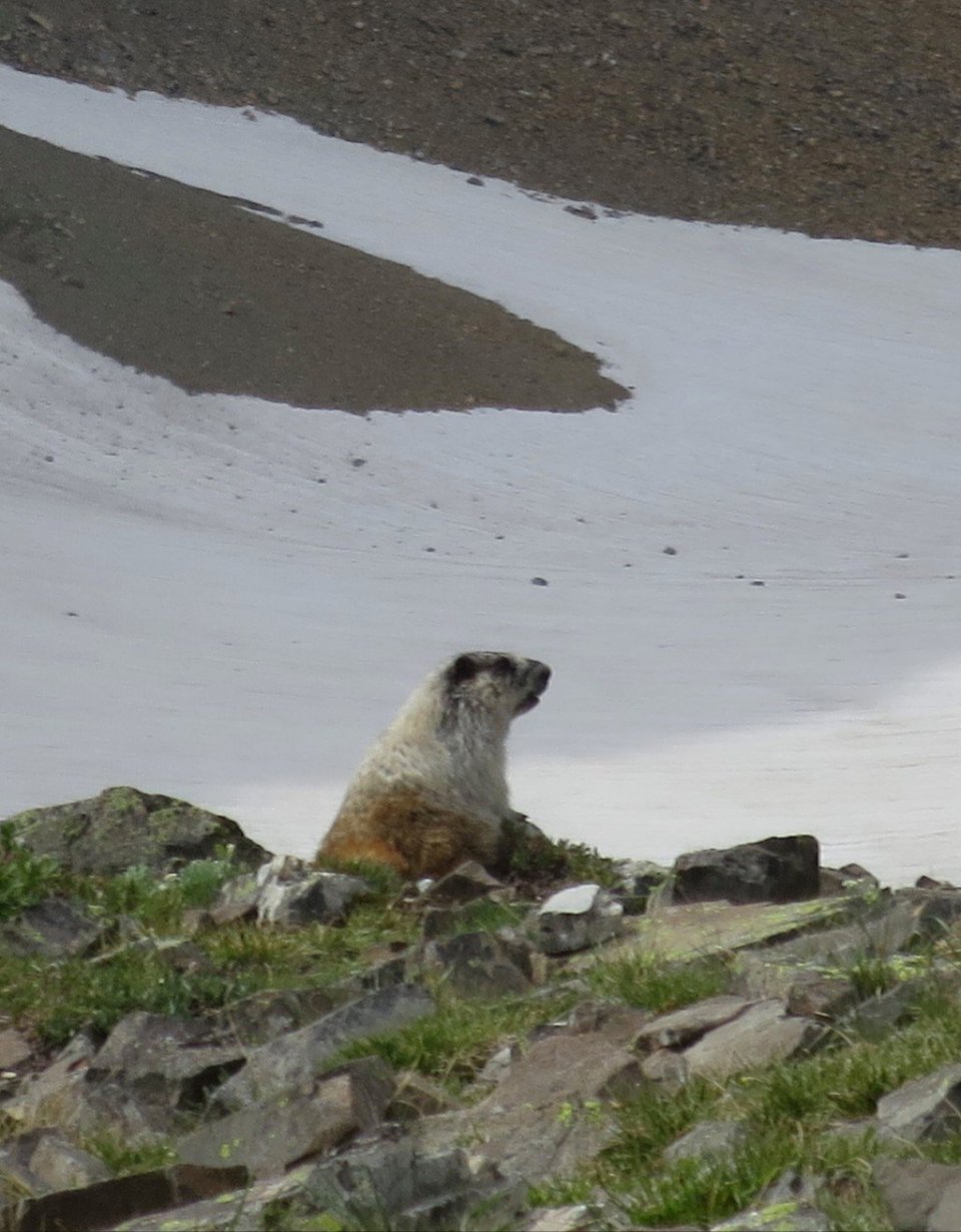 We passed Old Man Lake, part of a big glacial cirque. It was backed by a mountain eroded into a pyramid shape. It was so beautiful to be high on a mountainside on a clear blue sky morning, surrounded by stunning landscape in every direction. We stopped for breakfast halfway up the climb. It was wonderful to finally have good weather and breathaking scenery. It felt like an amazing reward for perseverance.