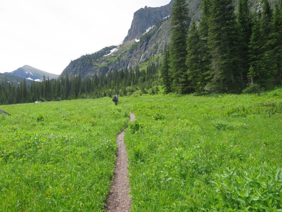 We has another 14 miles and another pass, the Triple Divide Pass before we to make it to our campsite at Red Eagle Lake. The water off the Triple Divide flows into three water bodies: Hudson Bay, the Atlantic and the Pacific Oceans.