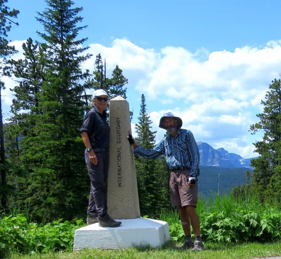 By 2pm we emerged into a trailhead carpark and we were done. And it was a bit of good luck, not planning, that we reached the US-Canadian border on Canada Day. We asked the US customs officer if we could go up to the border monument to take a photo. He was nice and said to watch out for the Canadians throwing hockey pucks at you if you crossed the border. Haa haa, he had a sense of humour.