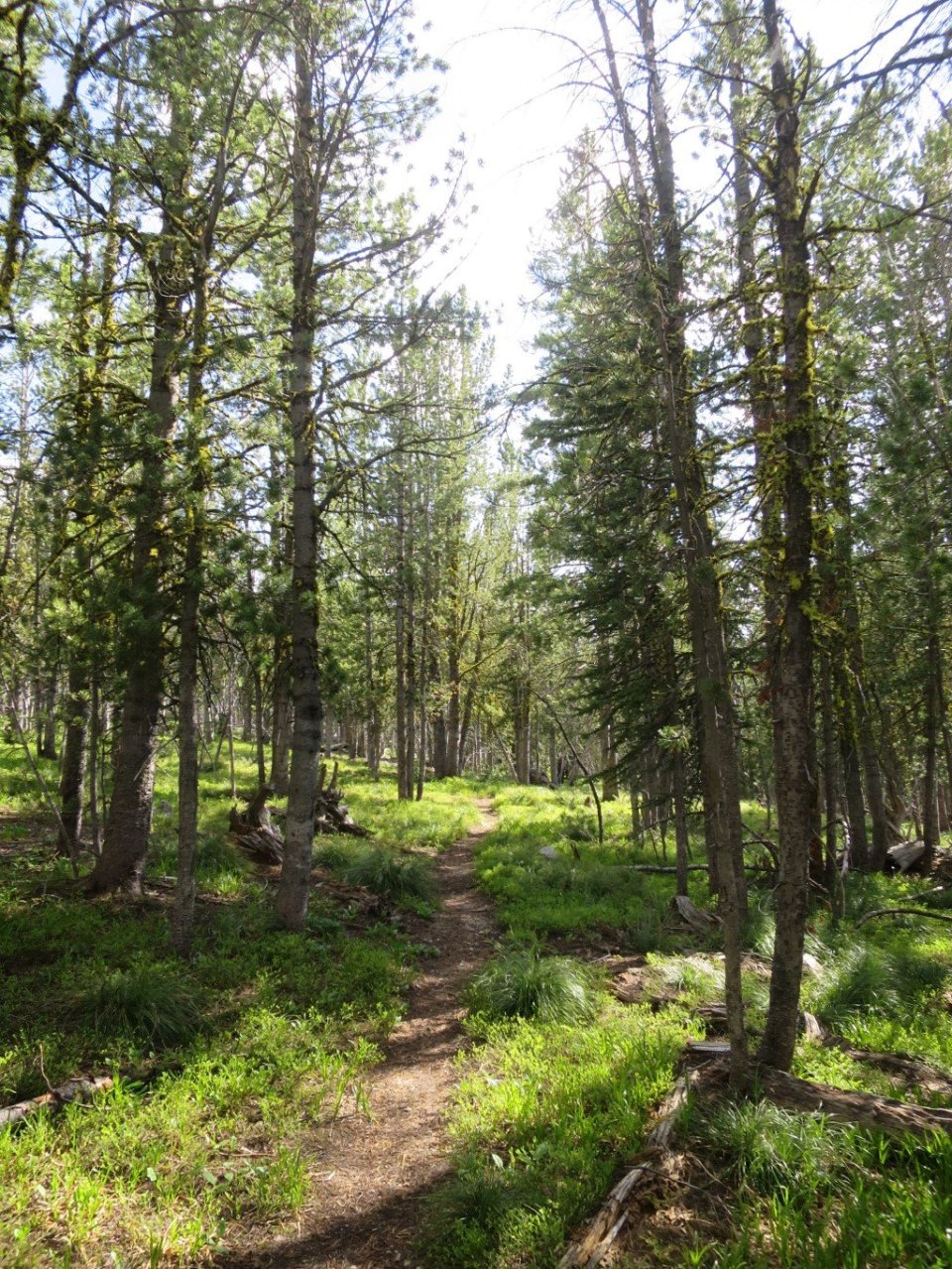 We descended through lush, green pine forest. The trail was boggy in parts from the recent snow melt. At the bottom of the descent we did a big U turn to go up again for what turned out to be a deceptively steep pass. The Anaconda- Pintler Wilderness was not going to let us go easily. The sun was out and it was a beautiful warm morning, with the warmth came hordes of mosquitos. But we can’t have everything. It is finally beginning to feel like summertime on this trail through Montana.