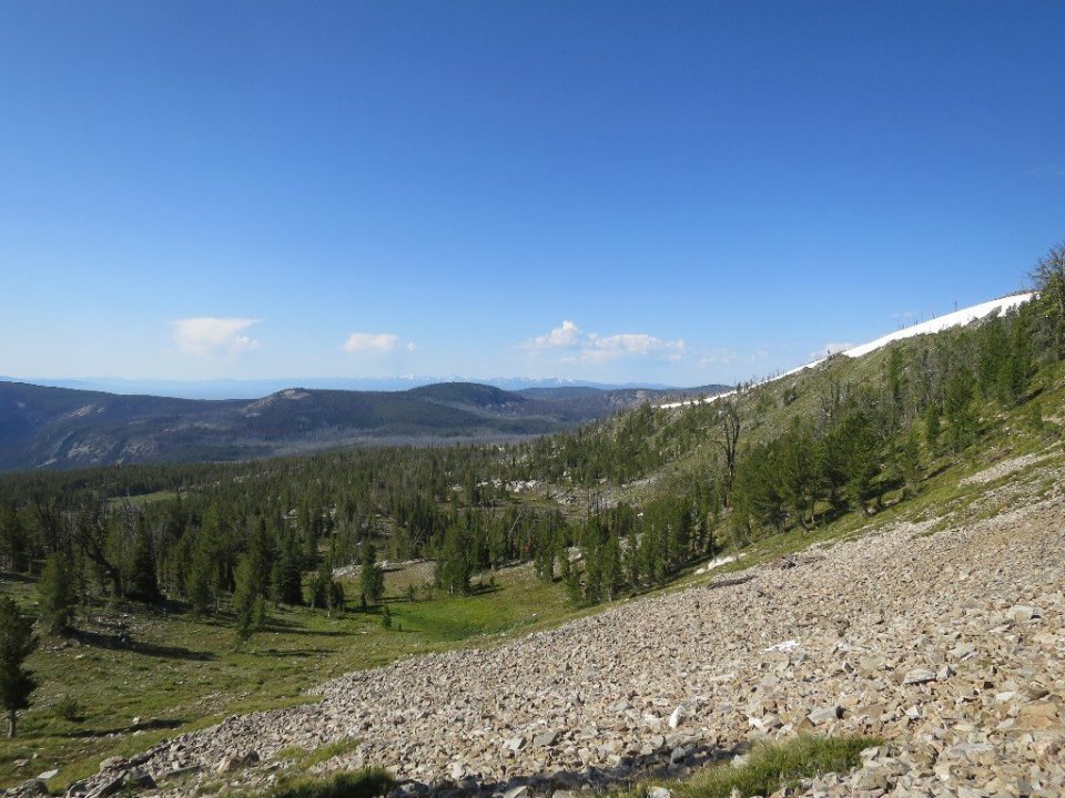 As soon as we left the lake we had a 1,200 foot climb over Pintler Pass. On the way up we had great views towards a very distant snow covered mountain range.