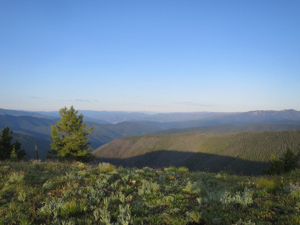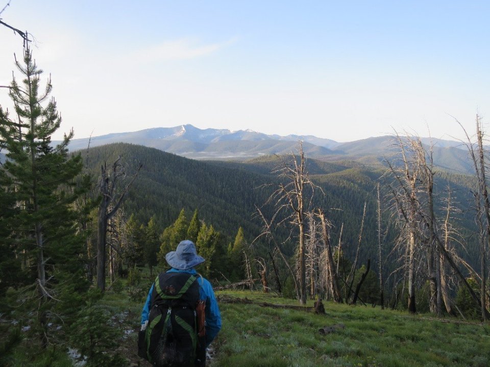 The trail was covered in patches of last nights snow and hail. The trailside vegetation was wet and our shoes and socks were soon soaked. We were at Big Hole Pass by the time the sun broke through the lingering clouds. It was nice to stop here, have breakfast and dry out a bit. It was also a chance to reflect on the history of this Pass. We learnt that Big Hole Pass was the location of a not too proud a moment in American history: the massacre of the fleeing Nez Perce Indians by US troops.