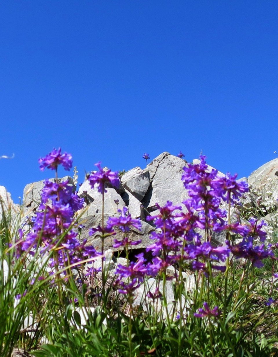 From the top of the climb we passed into a totally different landscape. It was incredibly beautiful. We were high on a ridge following a mountain over a pass. Wildflowers were everywhere and sunshine, it could not have been more different to the first part of the day. How effortless hiking seemed when the senses are engaged with the beautiful surroundings. I felt like I could just keep going.