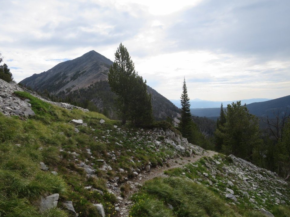 It was a very warm afternoon and Hammer was falling further and further behind. He was struggling to keep going so we stopped for a regroup. This seemed to work. We still had one more pass before we descended to our campspot for the day. It was late afternoon, mosquitos were getting quite vicious and this last pass really made us suffer. It was a 2 mile long 2,000 foot ascent which was newly constructed. Switchbacks were added and they were neverending. And unlike the previous passes this one was all through tall pine forest. We had hoped that after all that there may have been a view from the top.