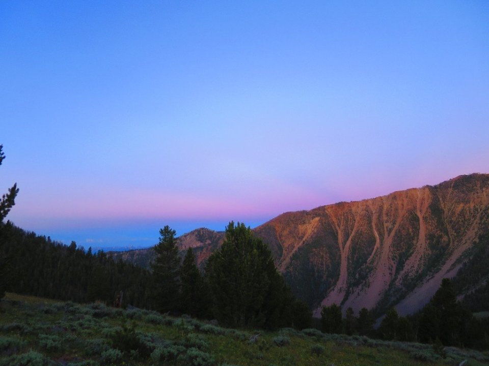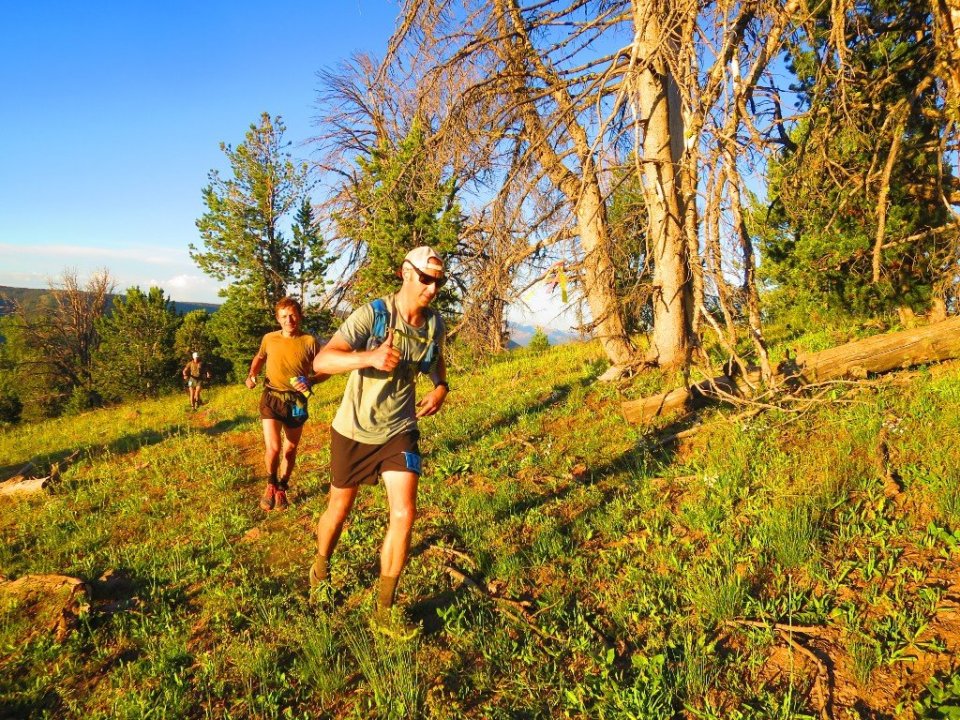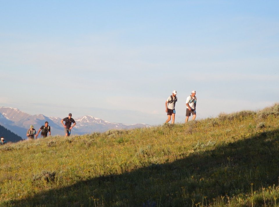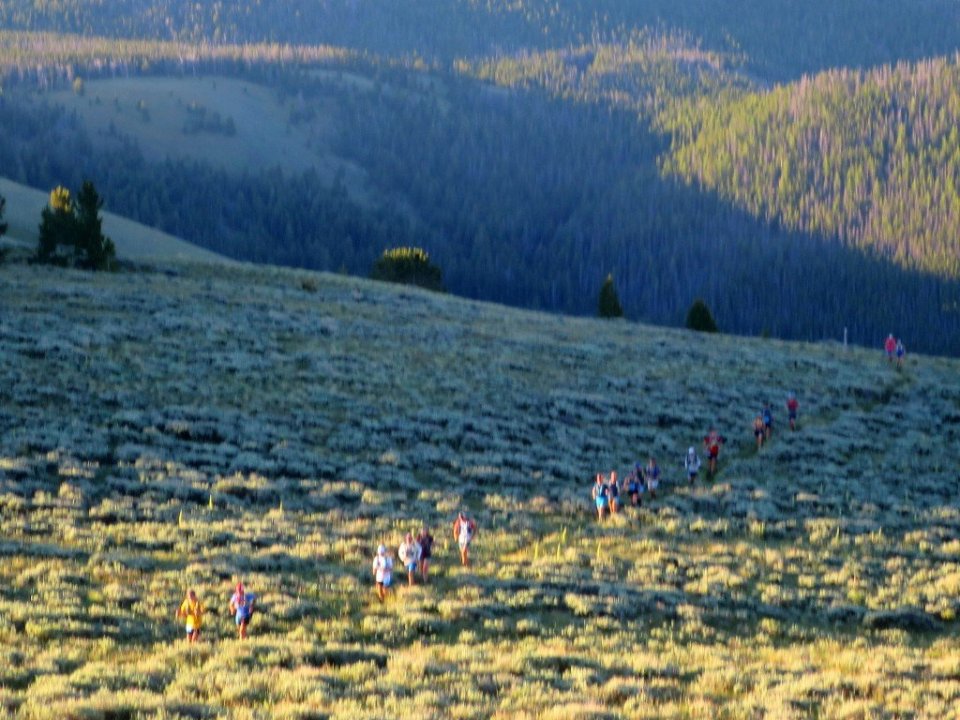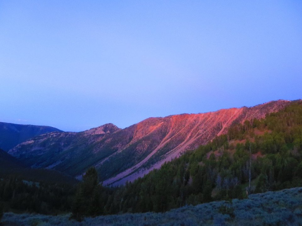 It was a lovely warm morning, even though we were camped at 9,200 feet. It really is summertime in Montana (and Idaho). This morning the trail left the jeep track we’d been hiking on most of yesterday afternoon and we were on single file trail. Great I thought, stepping aside for 200 runners coming towards us. It was beautiful watching the day come alive and the sunrise light up the mountains.