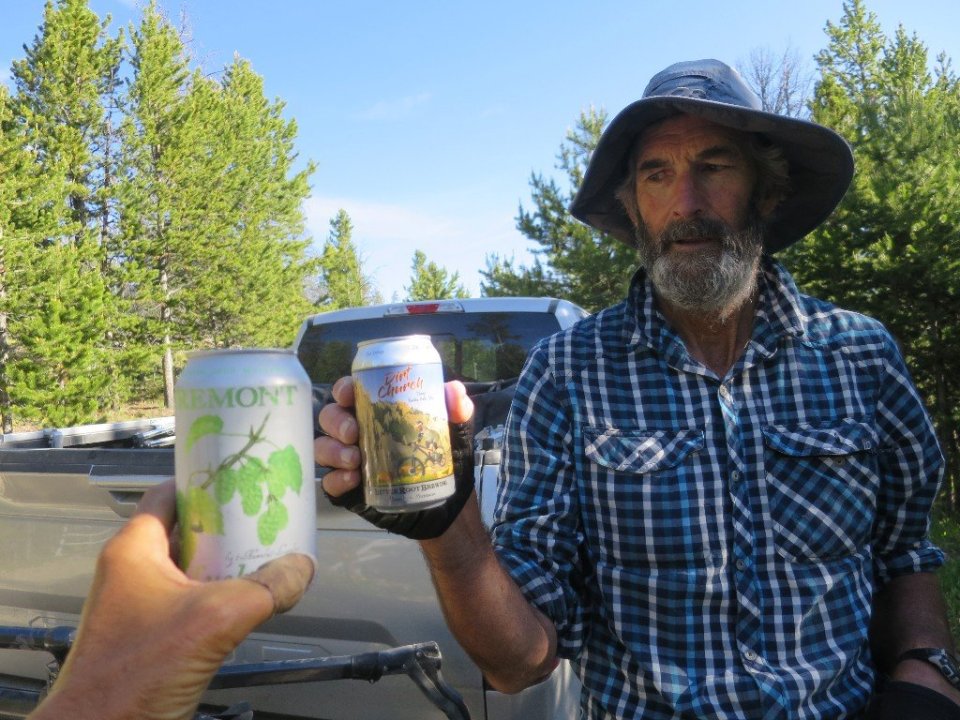 Our trail undulated and half way up the last rise before we reached Bannock Pass we met up with the race sweepers. We chatted to them for a while and one offered us a beer from his truck parked at the next road-trail crossing.