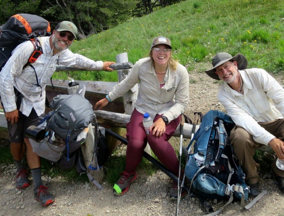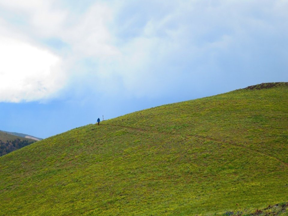 The Post Office opened right on 8 o’clock. We got our resupply parcel and were packed and ready to go at 9. It was exciting to be rested and heading out for our next section of the hike, 100 miles from Leadore, Idaho to Lima, Montana. Sam, the owner of the Leadore Inn where we stayed, drove us out to Bannock Pass to rejoin the trail. Another hiker Soda (Michael from London) whom we met in the Bob Marshall Wilderness was going back on trail as well. He came in yesterday afternoon just after the store had closed. There was another hiker staying at the Inn who came out with us but he may have taken a vow of silence. He did not talk to anybody, the whole time he was at the Inn or in the car. And when Sam dropped us off at Bannock Pass he just left no thank you, no happy trails. I guess you got to hike your own hike.