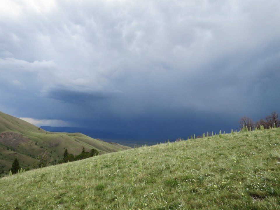 We camped by Tamboy Creek. And just as we got the tent set up another thunderstorm rolled through. Heavy rain is falling and gusts of wind are shaking the tent. We have all our cold weather clothes on. Montana sure is moody.