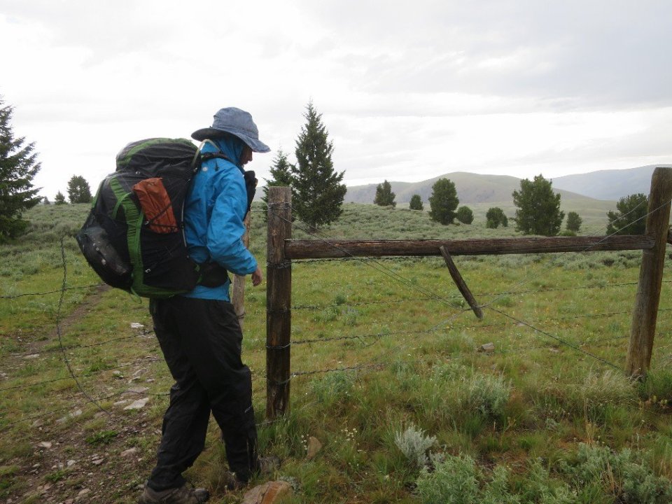 By the time we left the creek gully and joined a jeep trail, the thunderstorm returned. The rain was heavy, we were out in the open, hiking through cattle paddocks. It was very unpleasant. We crossed Bear Creek trying to avoid the huge, sloppy piles of fresh cow dung. We were well and truly out of wilderness. Back to opening and closing fences and cow poop.