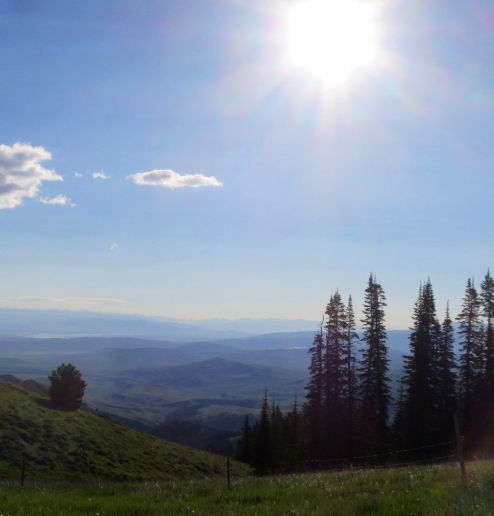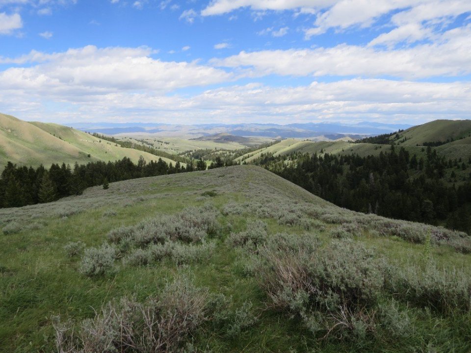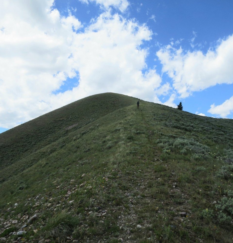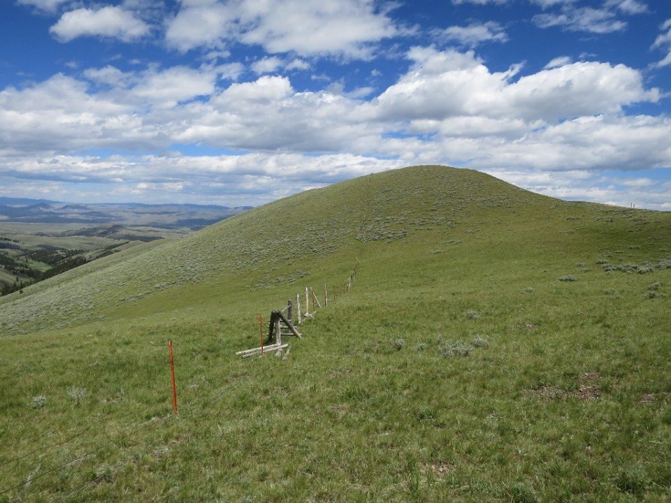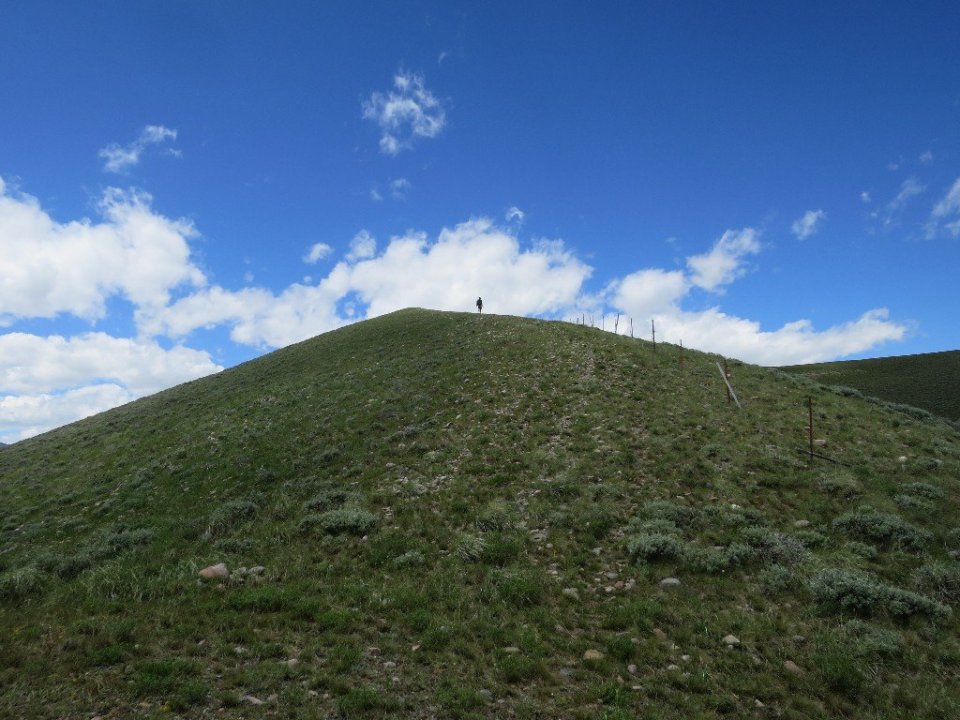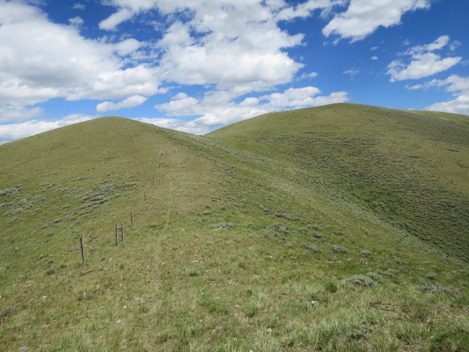 From there it was a slow uphill slog along a ridge. When we reached the top of this ridge we started to follow a fence line. The fence was on the border between Idaho and Montana.