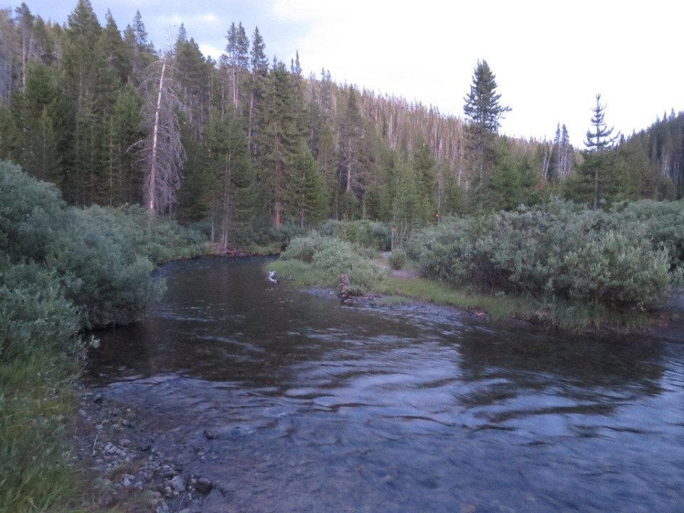 It was a mostly nice afternoon of hiking, passing active hot springs, walking along crystal clear creeks and the magnificent and huge Shoshone Lake. The only unpleasant part of the afternoon was walking through a muddy section that was ankle deep and very sucky along the swampy section that lead to the lake.
