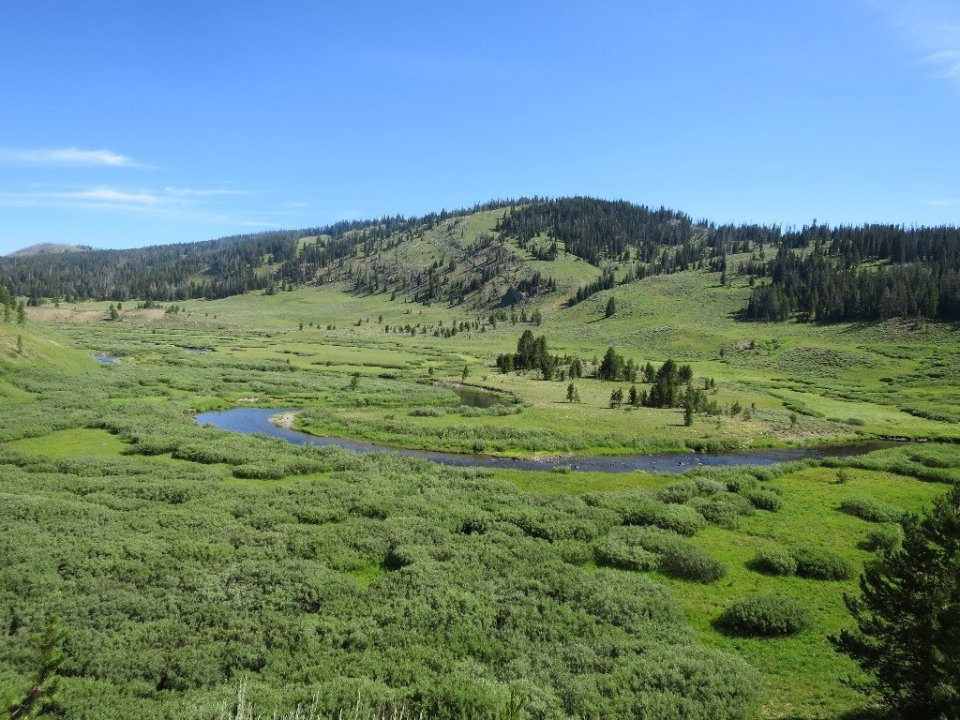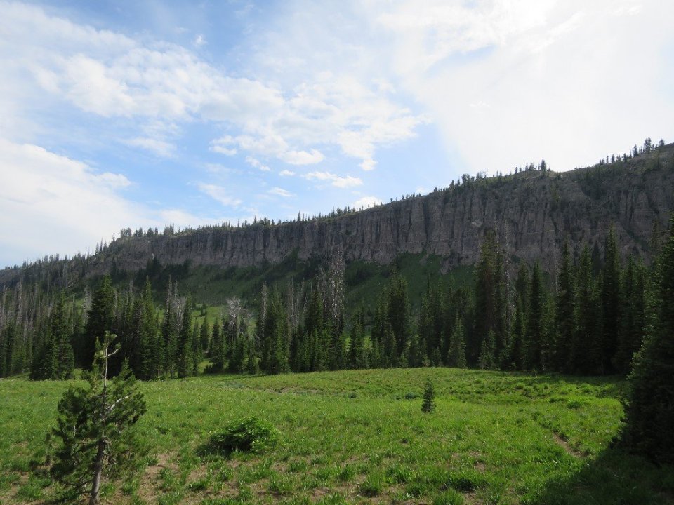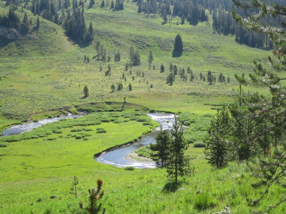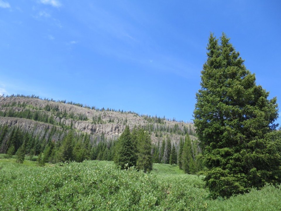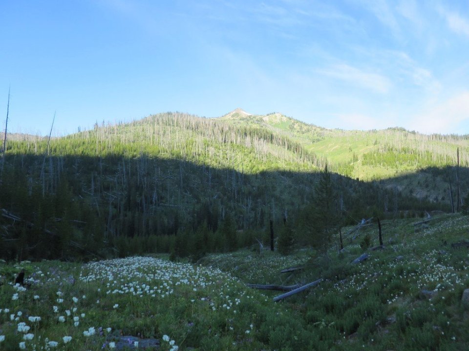 The descent off the pass was slow and perilous. Like descending on ball bearings, I had 3 near misses. It was cool to cross the Two Oceans Creek which was right on the Divide. Once we descended off the pass it was back to hiking along creeks and creek valleys. We camped by a swiftly flowing Trail Creek.