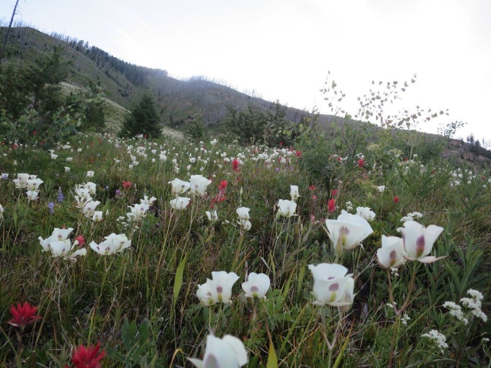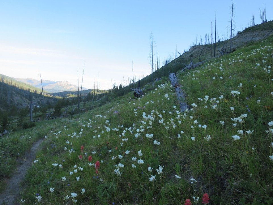 It was a very cold start to the day. So cold that I was expecting to see snow on the ground around every turn of the trail. We were high on the side of the narrow Snake River valley. A cold wind was funnelling down the valley making it feel even colder. Masses of wildflowers carpeted the sides of the trail. I kept stopping to take photos. But with cold hands I was fumbling.