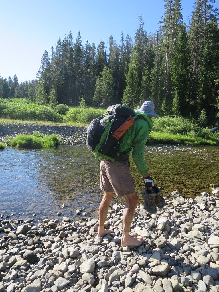 Once in the sunshine the hiking was comfortable and easy. We soon exited Yellowstone National Park and entered the Bridger Teton National Forest. The trail continued to follow the aptly named Snake River. There was something very calming and meditative about watching the gentle and languid flow of the river. It was mesmerising. I wanted to stop and just get lost in watching the gentle river flow but the trail kept calling us onwards.