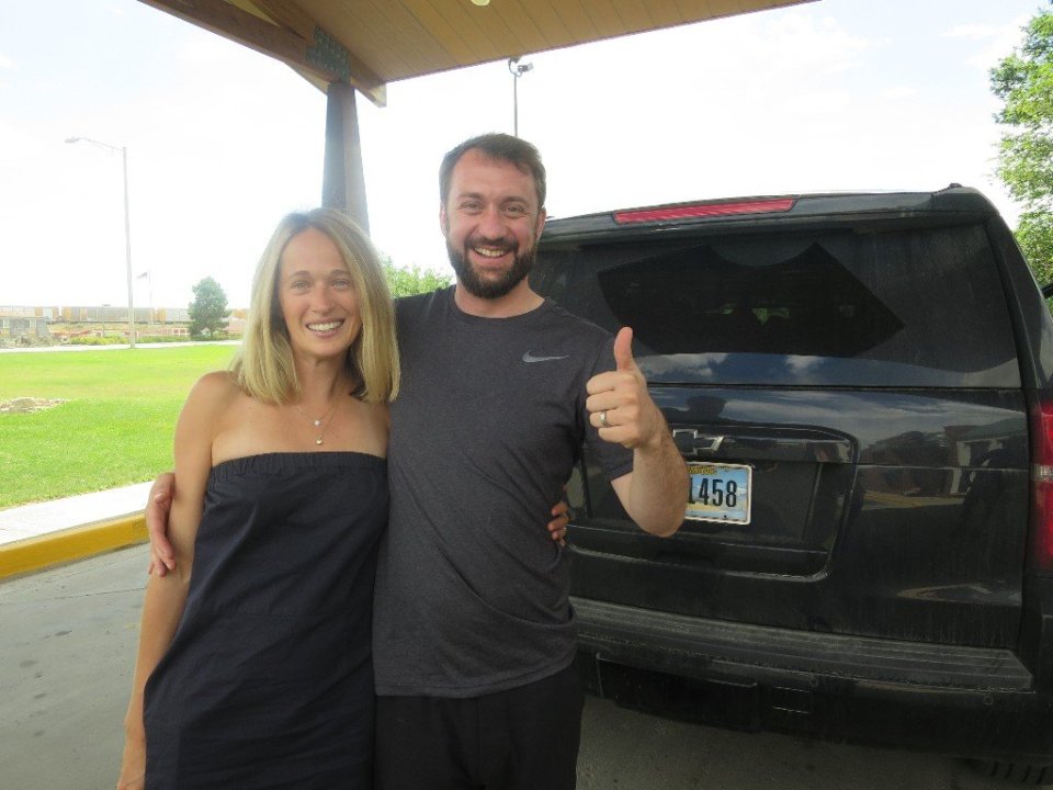 Rawlins is 200 miles from Dubois. We walked out to the road junction and put up a sign to hitch. It’s something I still find hard to do but Hammer is so sure, just be patient – all it takes is one car to stop. And so it was this morning, a lovely couple Ian and Tory doubled back after passing us and offered us a ride all the way to Rawlins. How lucky and grateful were we to meet these beautiful people. They were driving from Jackson, where they live, to Chayenne for Ian to sit the Wyoming State Bar exam. Tory, who works as a clinical psychologist in the education system and in private practice, has flexibility with work so was able to take the time to support Ian.