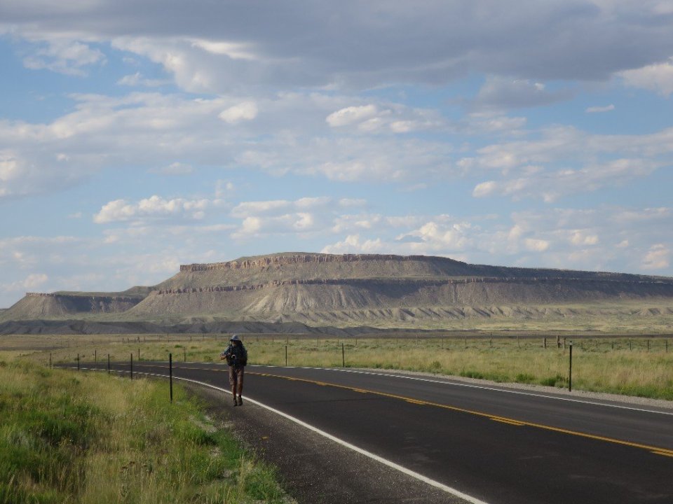 We plugged into podcasts and hiked along the road for the day. The landscape around us was desert like with red rock cliffs rising gradually as we left the town behind. We passed two northbound hikers, Dirty Bowl who has been on her own since leaving the Mexican border and Pretzel later in the day. We stopped to talk to Pretzel for some time. Such an animated and interesting character we ended up giving him our bear spray. He is from Montana and works at Yellowstone NP as a firefighter. So in a way he is walking back home.
