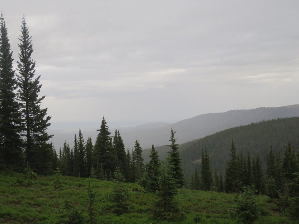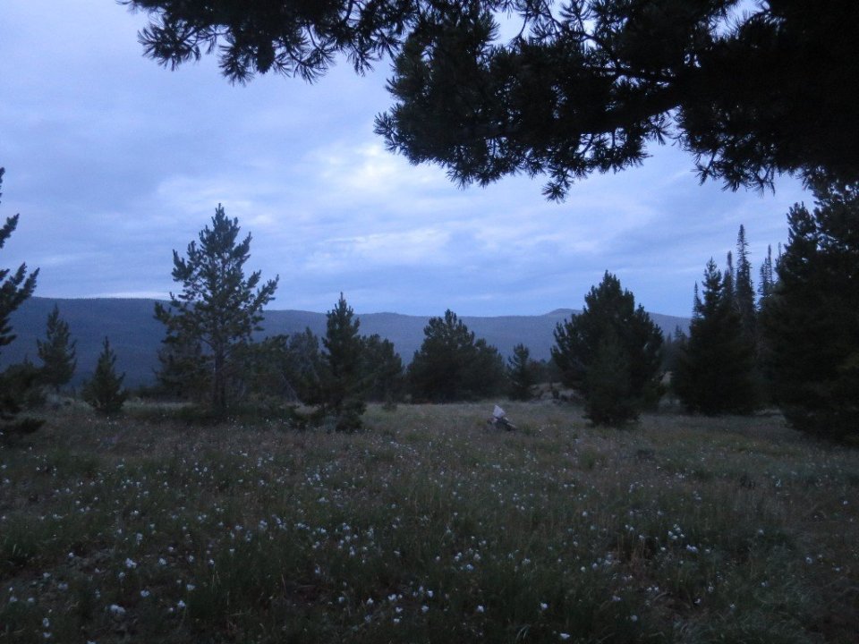 We were camped at 9,200 feet in elevation. I was surprised I could sleep so well. It had rained through the night but as we broke camp waiting for first light, the sky looked grey and overcast. We only had a short day to hike before getting to the small town of Encampment to pick up our resupply package. We broke camp and were on our way by 6am.