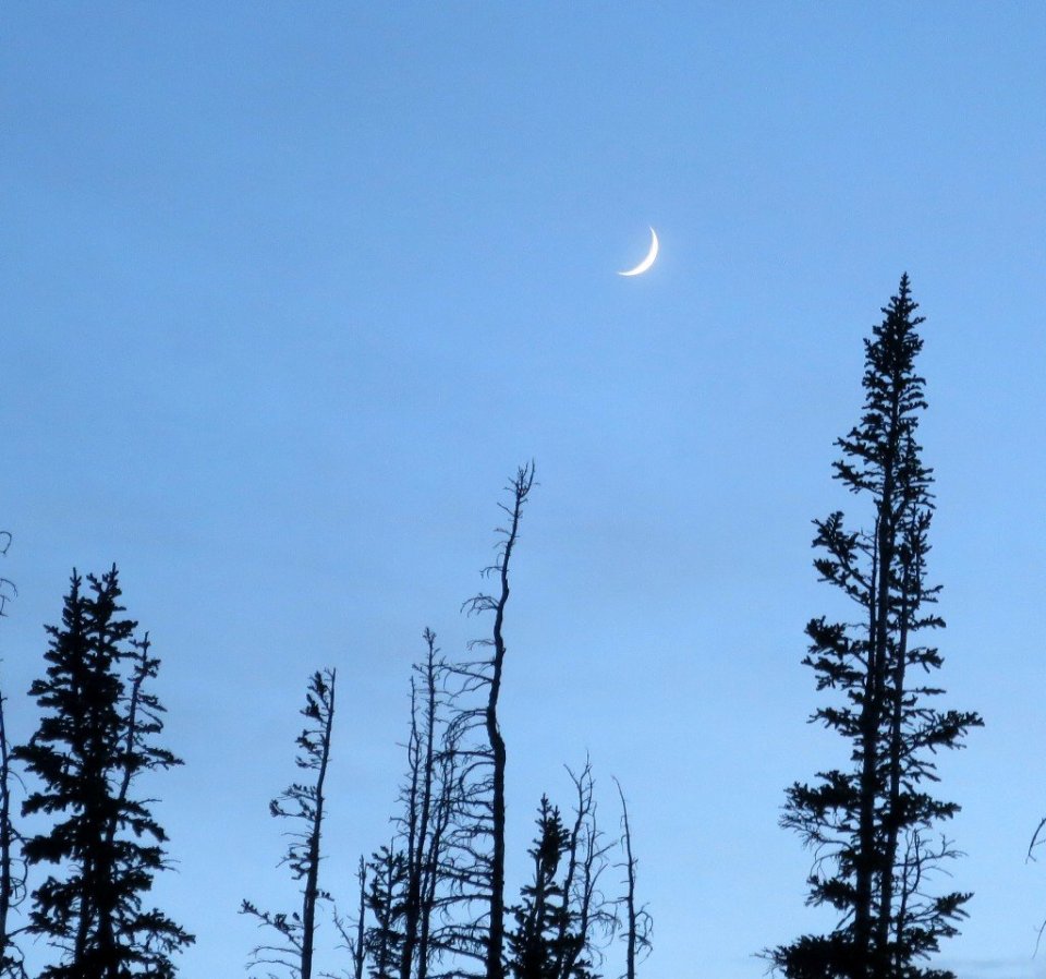 A new crescent moon was up in the sky as we set up camp. A thunderstorm was breaking somewhere to the east of us. In the evening twilight elk calling, with their bugle like call, was the only sound that occasionally broke the silence. It was a most perfect day on trail.