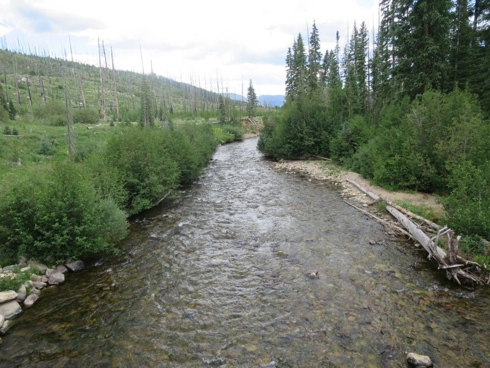 We followed a series of creeks crossing the large Middle Fork Elk Creek on a bridge. From here we commenced a 3,000 foot – 8 mile climb. It was hot in the afternoon sun and any shade provided by the pines was welcomed. We entered the Mt Zirkle Wilderness in the afternoon and stopped to camp at an unnamed lake at 10,700 feet in elevation.