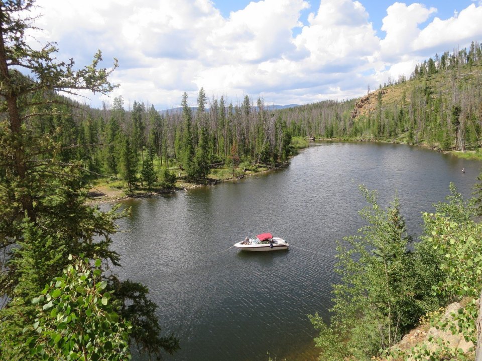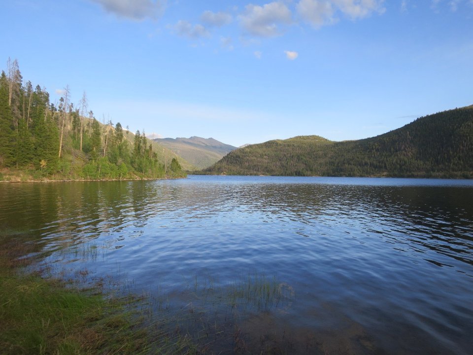 We had thoughts of heading all the way to Arapahoe Campground which is right by Lake Granby. But late in the afternoon we passed a perfect campsite by the lake and decided to stop. Mosquitoes have been pleasantly absent for much of the afternoon hiking. Even when we stopped to camp a few were around but certainly not the huge hordes of bloodthirsty suckers we’ve had up till now.