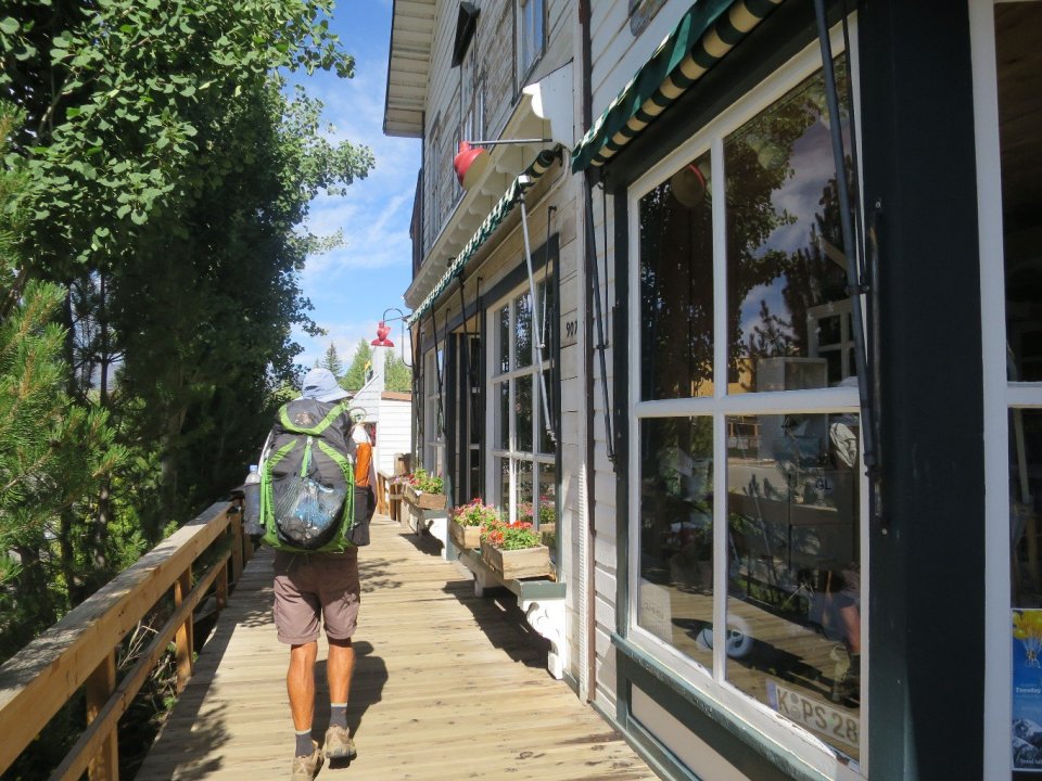 Our next section of trail is 130 miles to Breckenridge and we had to buy food for the section. Not a great variety of foods to choose from in the two grocery stores but we managed to resupply. And as we didn’t have a room in town, we sat in the park and repacked. By 11.00 we were ready for lunch and a top up charge to our battery before leaving town. We had a sandwich with a side salad at Cy Deli. We were ready and bursting to go.