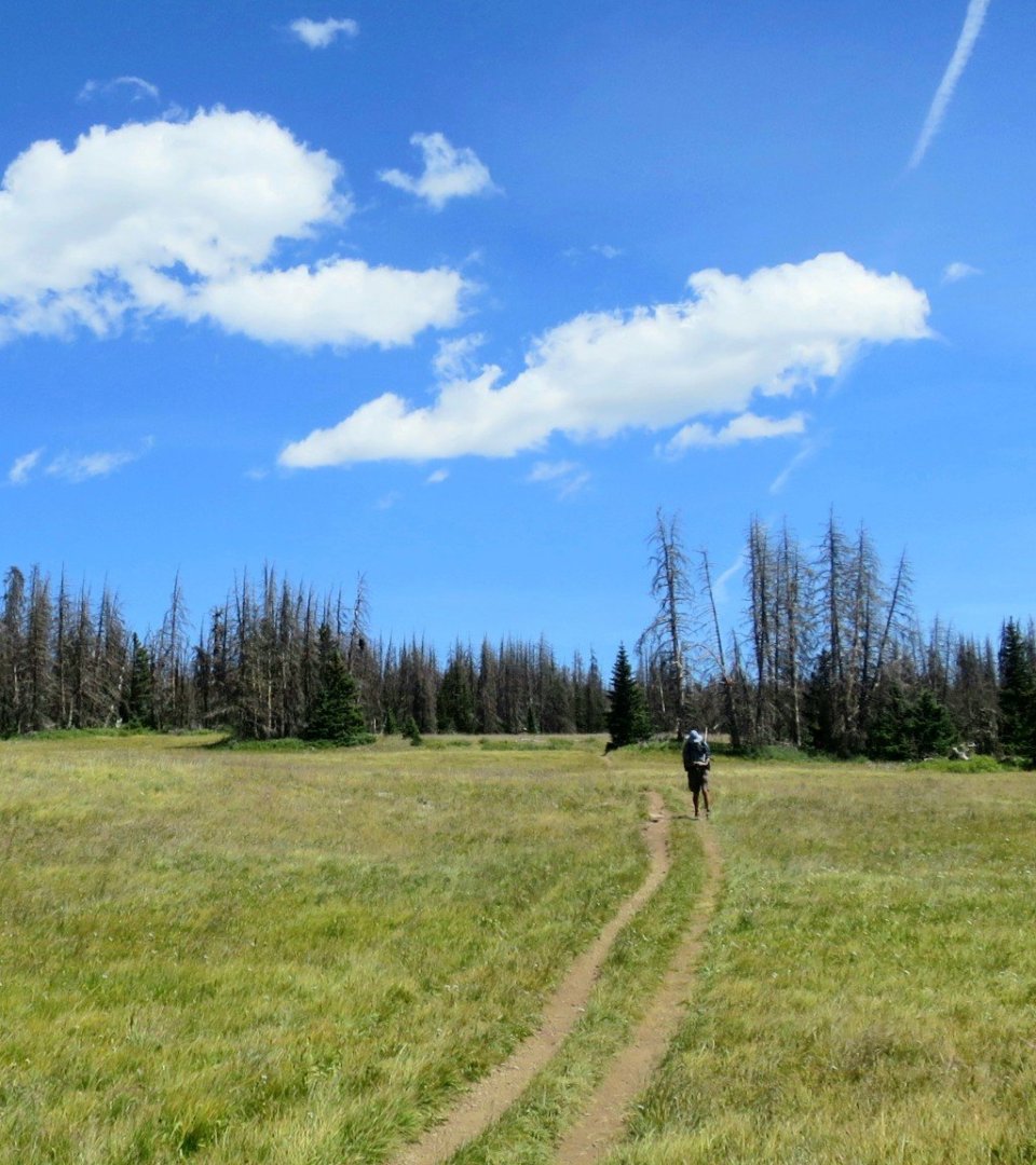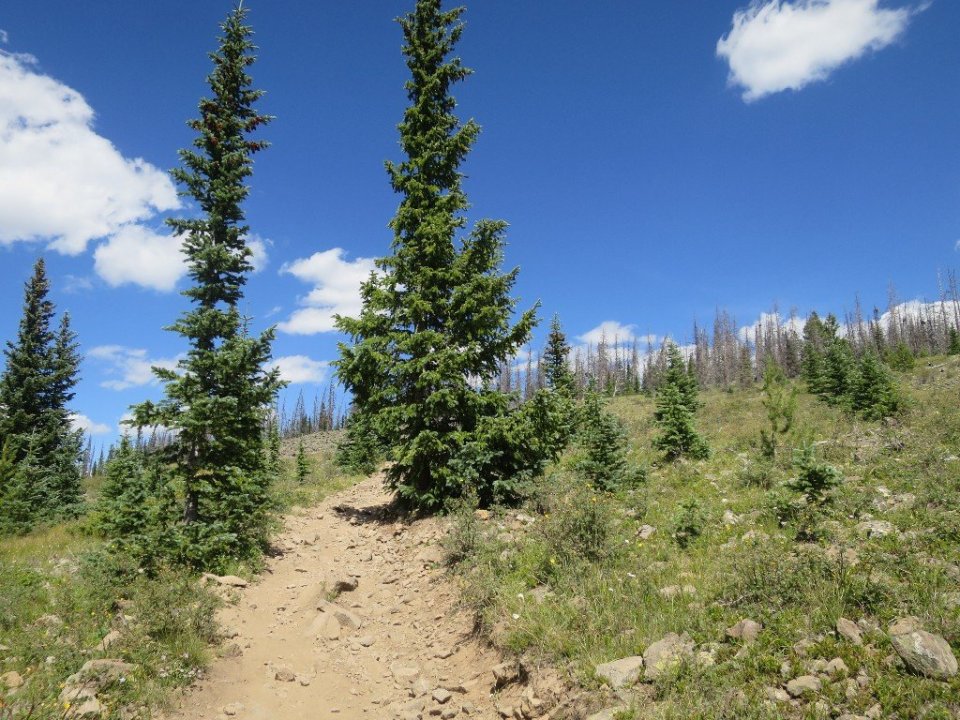 From the creek valley we entered a long section that was like a plateau, Sergeants Mesa. We passed a school group who were out hiking the Colorado Trail. Hammer spoke to the teacher for a bit. They were the third group from an outdoor education school in Denver. There were two other groups ahead of us. They were hiking 10 or so miles a day and are out here for 16 days, completing the trail over 4 years. The group we passed was going to camp at Baldy Lake a few miles ahead.
