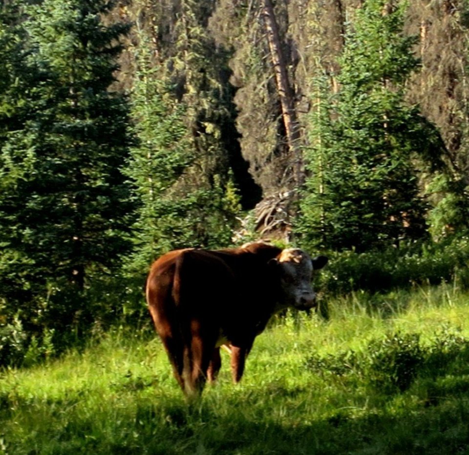 Yesterday started to feel like we were getting close to New Mexico. We crossed our first Colorado cattle grate, then we crossed a gate across the trail and soon saw a herd of cows. This morning in the creek valley we were back to hiking past huge cow pats. A lone bull watched us walk past with disinterest.