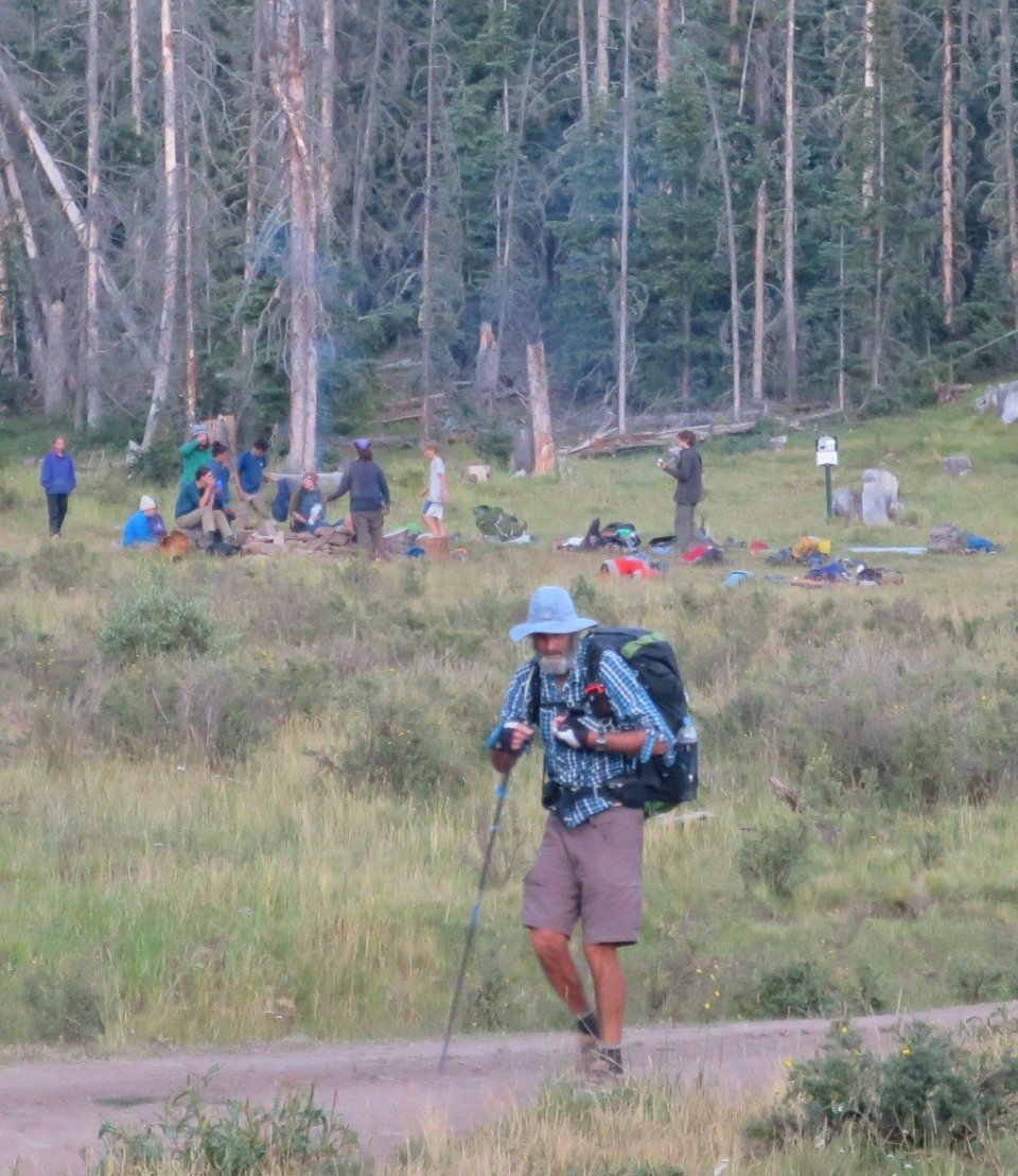 About 3 miles after the Baldy Lake turn off I came upon a young girl sitting by the side of the trail with her pack still on. She looked a little distressed. She had lost her hiking group. She was not with the school group we passed but the group that was a day ahead. She thought the group had gone down a side trail, to camp. She was going to go down and look for them. She had no map and seemed uncertain. I asked her to stay put while Hammer dropped his pack and ran down the Duchmans Creek side trail to see if he could find her group. I stayed with her.