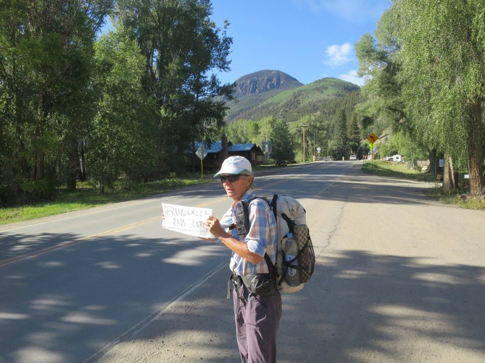With the internet connection restored to the town I woke super early this morning and worked on the blog. It was lovely and comfortable to sit up in bed drinking coffee and doing the updates. Hammer woke just as I was finishing. We are heading back on trail today but first we planned to have breakfast at a local cafe. During the summer months the town is home to a large number of Texans who holiday here. We are not sure how easy it was going to be to hitch back to Spring Creek Pass.