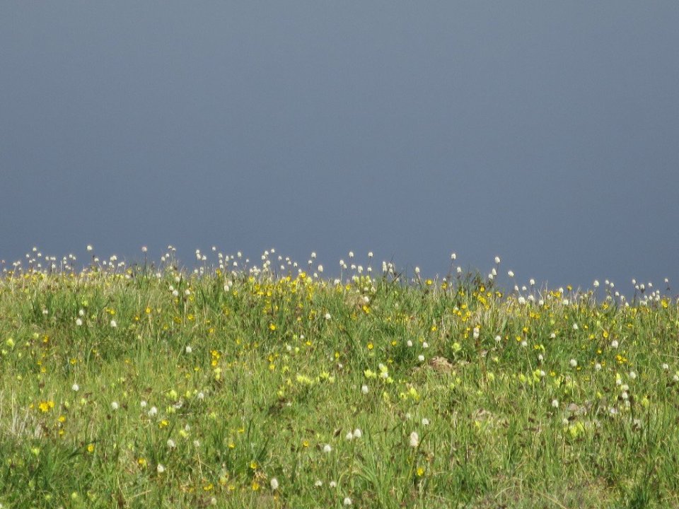 We were a little bit better prepared today. We got warm clothes and wet weather gear on before the rain turned to hail. And we used our groundsheet to wrap around us as the sky opened yet again. Hail pelted the groundsheet for some time before turning to rain. We stayed warm and dry under the cover. Rolling thunder rumbled above the mountain and did not seem to move. The storm lasted an hour, same as yesterday but we fared so much better by being a little bit better prepared. We must have looked a sorry sight, clinging to the side of a mountain under a plastic sheet, but we were warm and dry. And it made it all the difference.