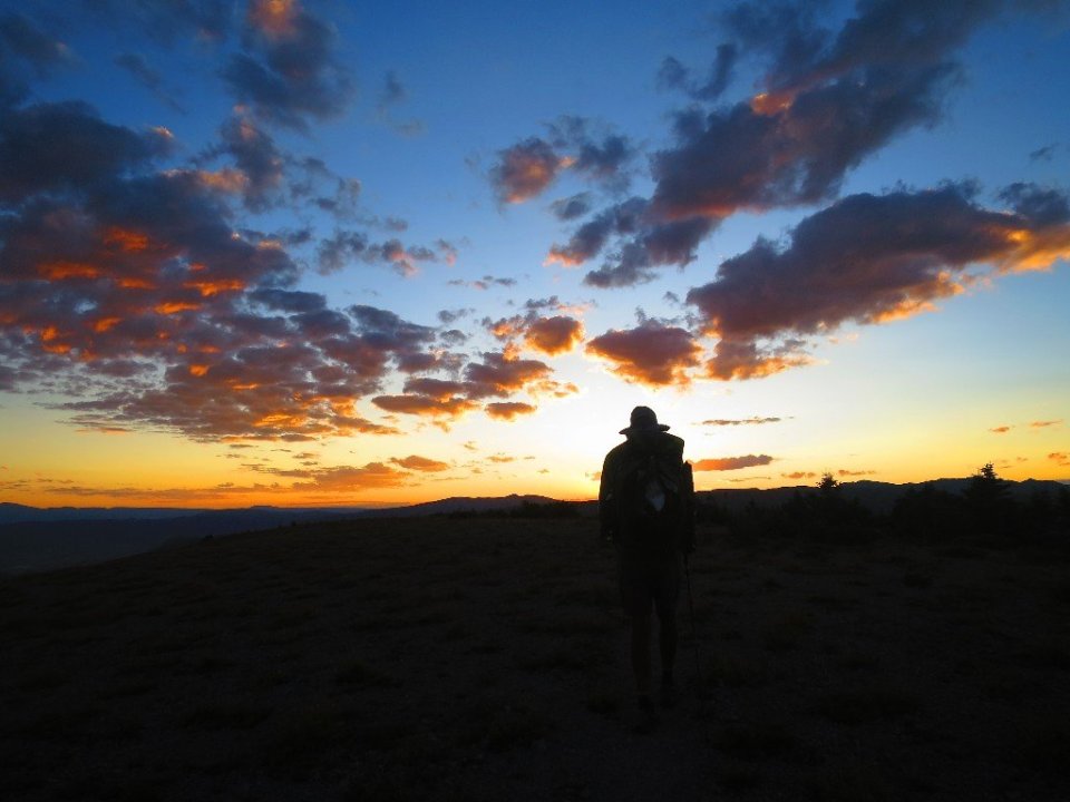 We left our campsite in the dark and it was almost an hour and half before the sun rose. We walked above Cherokee Lake in the darkness. Two small green lights caught my eye. Hammer thought they looked the same as the arrow we found yesterday. Could it be hunters again? As we hiked away Hammer caught sight of another person walking in front of us in the distance. A green headlamp reflected every now and then. About half an hour along they turned off to a lower trail and we continued our ridgetop traverse. I’m feeling a little nervous about hiking in the dark with hunters around. It feels a little alien to me. Hammer doesn’t think it’s a problem.