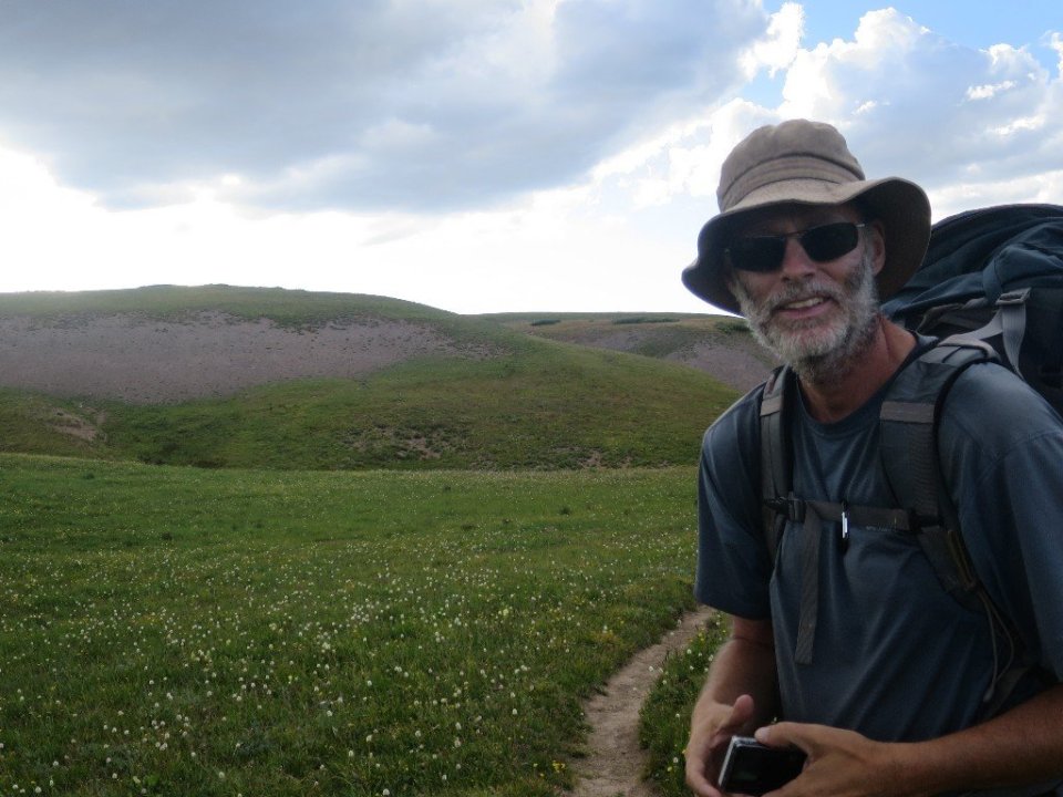After lunch we had a long descent passing a huge bunch of sheep being closely guarded by sheepdogs. We were joined by Schultzy, a CT hiker with whom we have flip-flopped since Hope Pass near Twin Lakes. He hiked with us, chatting to Hammer most of the afternoon, all the way to the trail junction where the CT and the CDT split. Schultzy found a passionate interest in meteorology when very young and is working in that field in Baltimore now. What a fantastic skill to have out here, an ability to read clouds and know what’s coming. It was sad to be leaving the CT hikers. The CDT will be a little bit lonlier from now on.