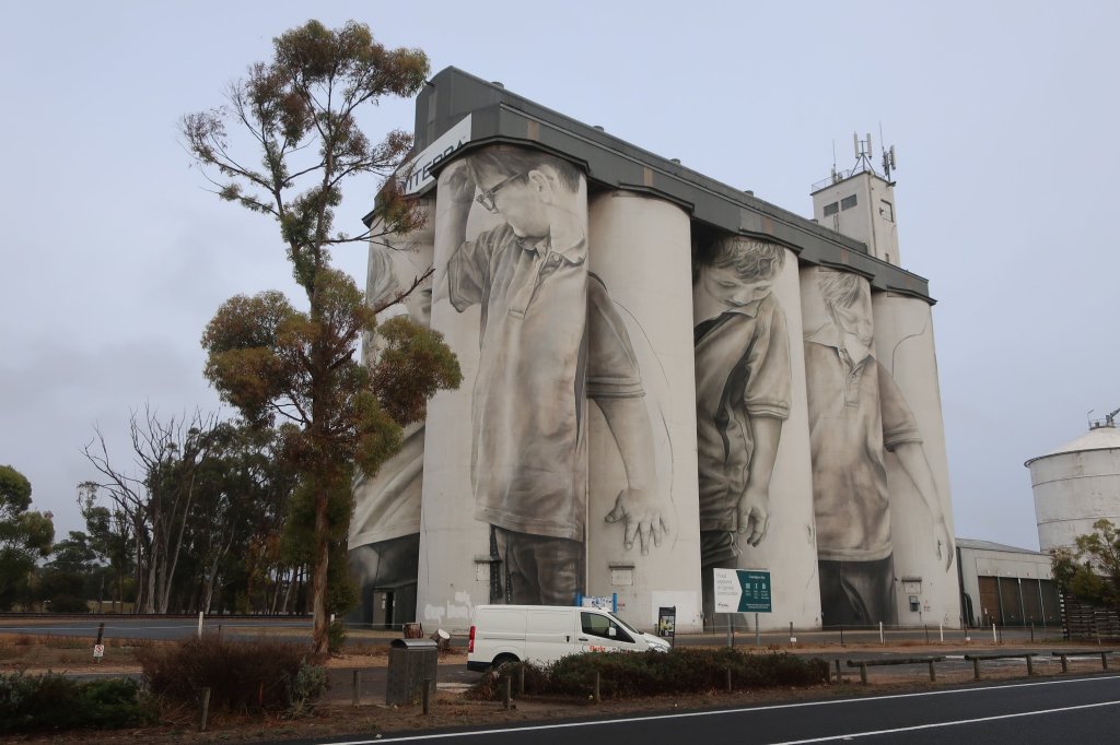 The next day we had a long drive to reach the ferry terminal in time. More flat grazing and crop growing coutryside till we reached Mt Barker in the hills above Adelaide. We stopped briefly at the decorated wheat silos at Coonalpyn and the nearby huge salt lake which under good light conditions is completely pink. There are quite a few pink salt lakes in South Australia.