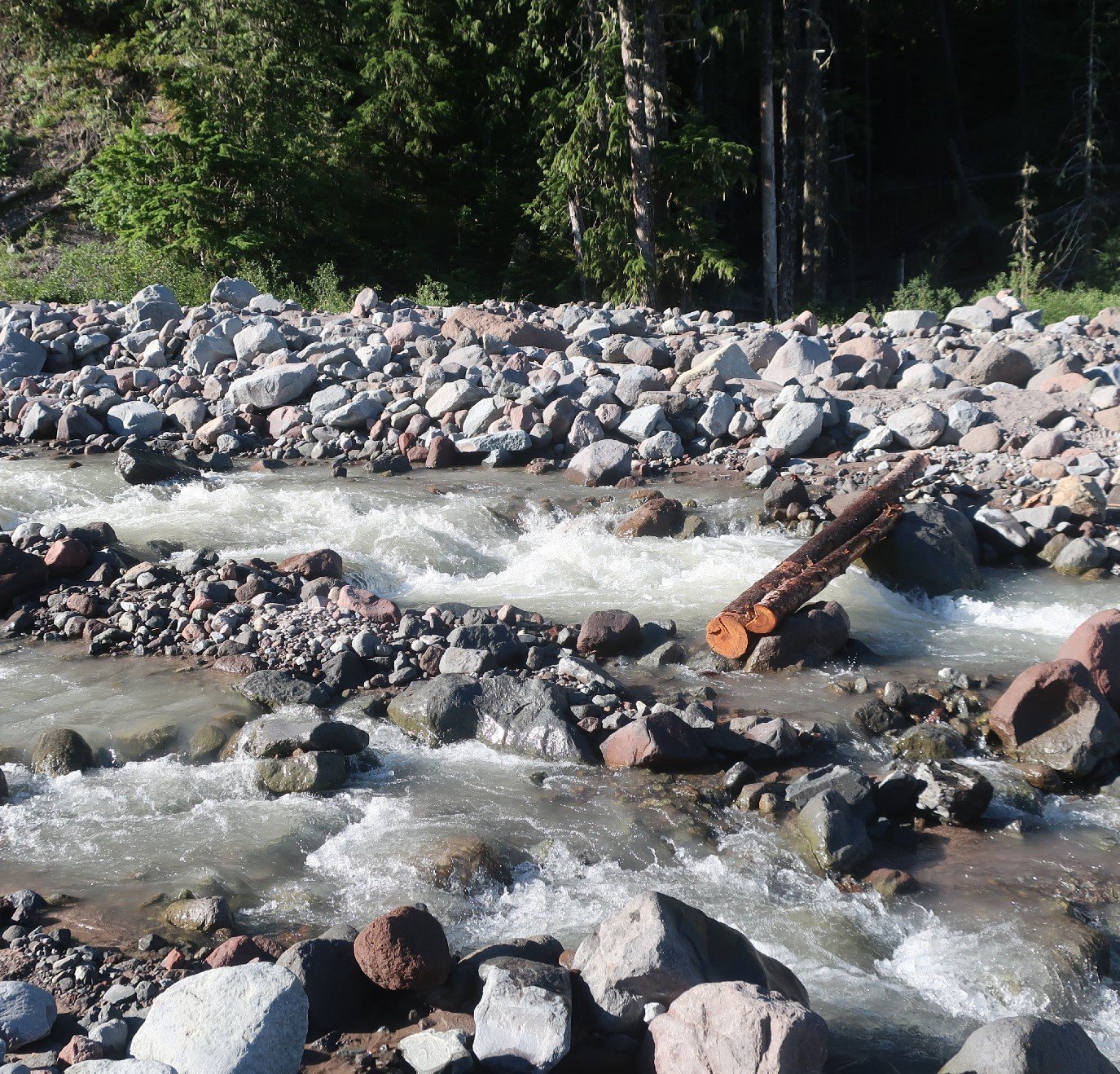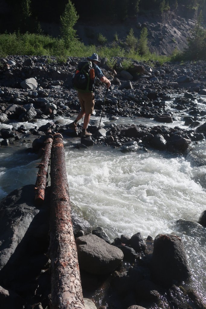 With the pretty Ramona Falls behind us it was back to the green tunnel. I didn’t really mind as I could really focus on the beautiful birdsong. Today was a day of big ups and downs with one more creek crossing at Muddy Creek in between. I did remember this creek crossing from my hike in 2017. You had to hold onto one log while walking sideways on another. That is now replaced by a much easier to cross wide log.