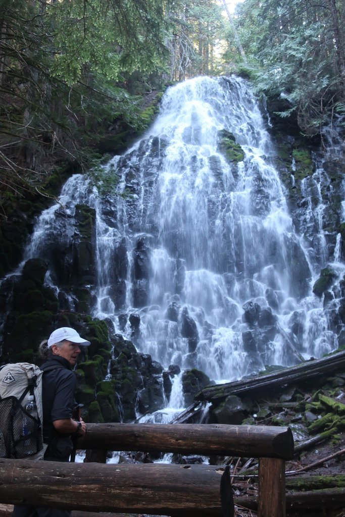 From here we took the Ramona Falls alternate. A wide trail leads to the prettiest waterfall. The water from the top of the falls, fans out and gently cascades along the rock face as it spreads out. It is mesmerising to watch. It was still early and there was no one else around. Even though we’ve seen it before it is still very impressive and worth the detour.