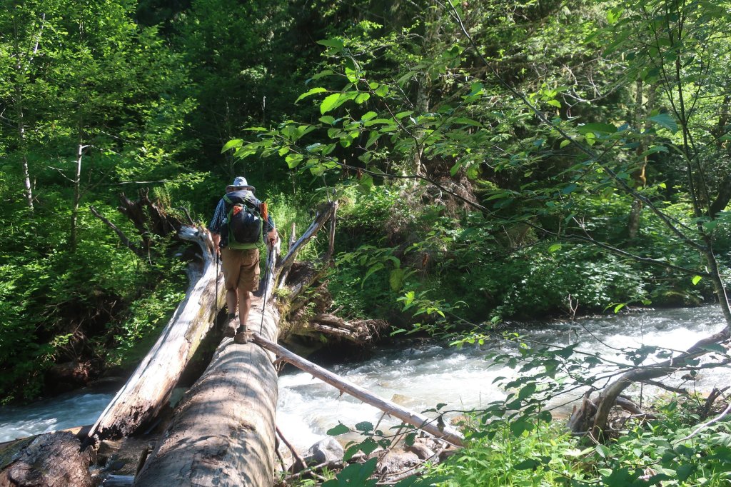 Sandy Creek crossing, at the bottom of the descent looked a little bit hairy. Just like yesterdays creek crossing, it wasn’t particularly wide but it was running fast. We walked up and down till we found a well placed log across. Fast running creek crossings still cause me anxiety, I had a racing heart and dry mouth as I crossed. Hammer danced across and watched and waited for me on the other side, ready to leap in if required.