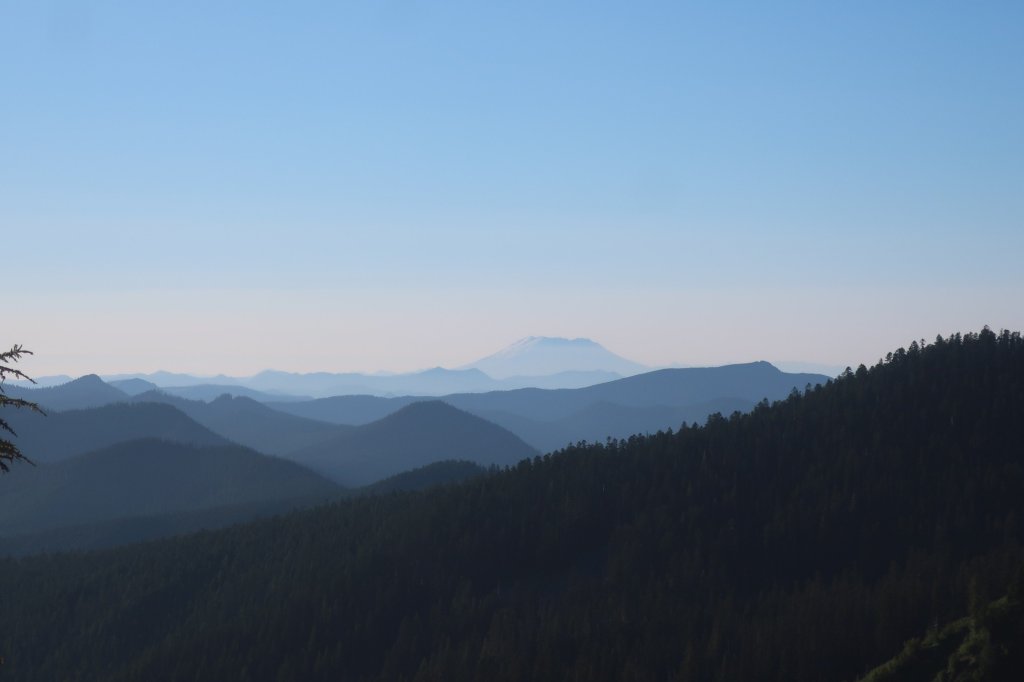 As soon as we found a reasonably flat spot out of snow we called it a day. It was a bonus that the campspot came with the most incredible view at the base of Mt Hood with Mt St Helen’s prominent to the south.